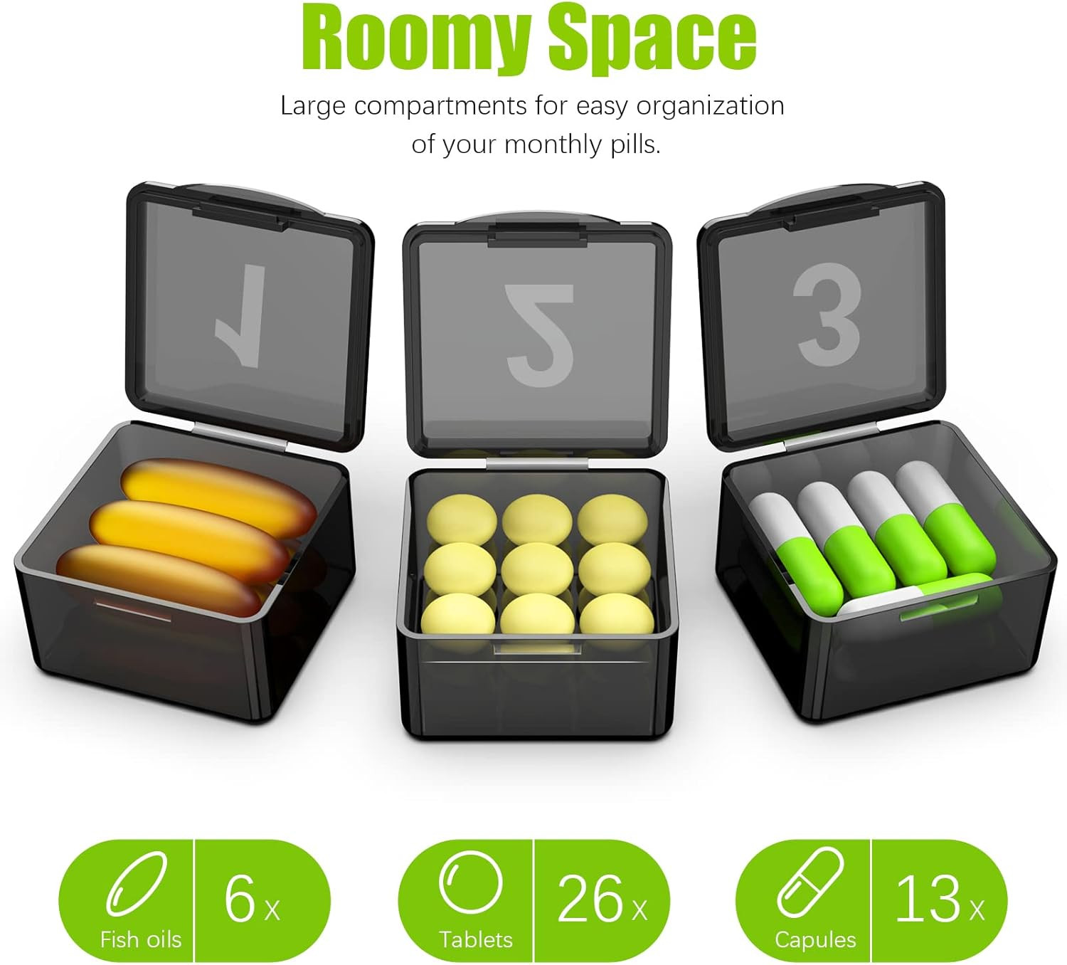 Monthly Pill Organizer Once a Day - 30 Day Pill Organizer Box - Easy to Open - L
