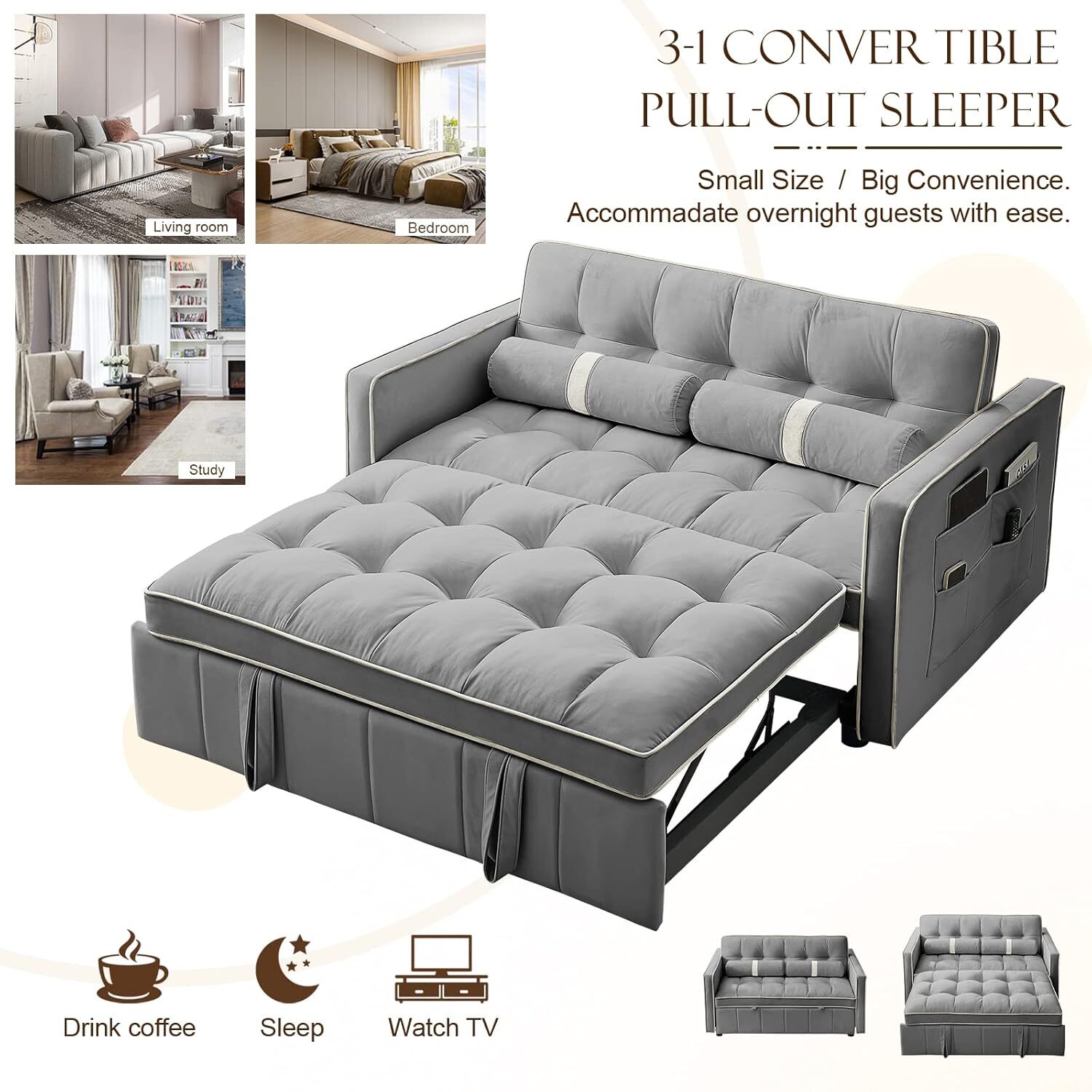 3 in 1 Convertible Sleeper Sofa Bed 55 Velvet Loveseat Pull Out Sofa Bed Couch