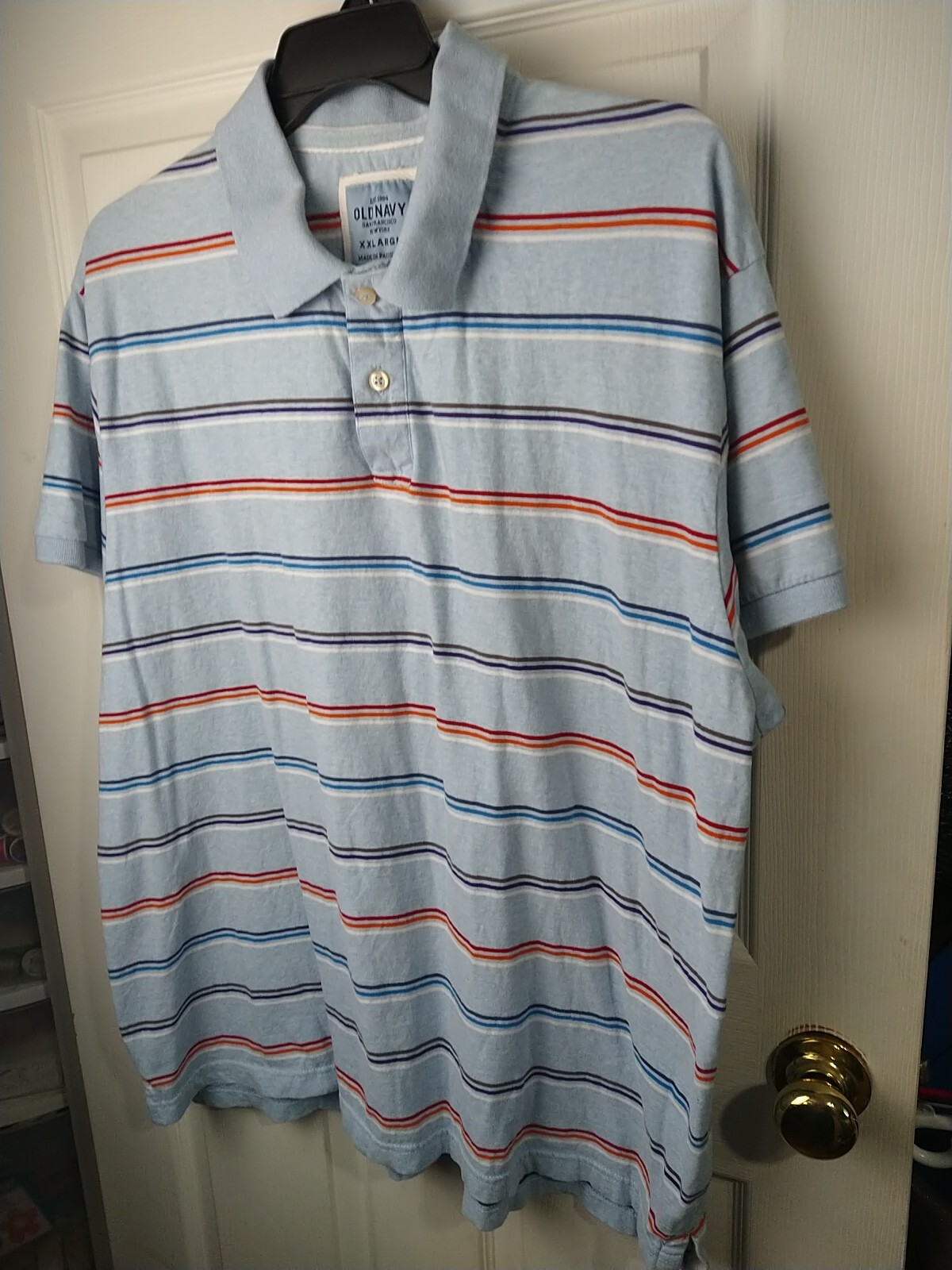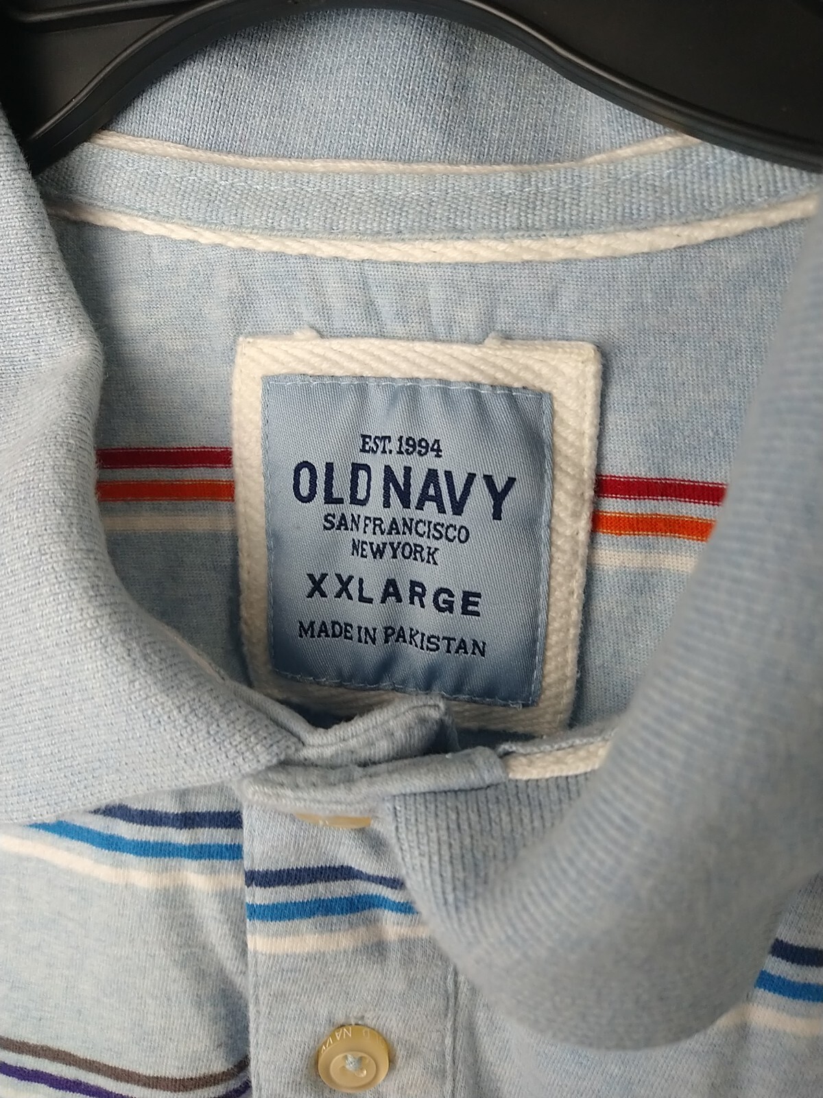 как выглядит Old Navy Mens XXL Polo Striped Blue Shirt Short Sleeve Two Button Close фото