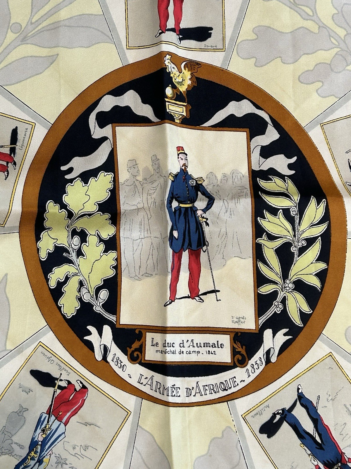 как выглядит Rare VTG 60/70 s LR Paris Silk Scarf L armee d afrique African Army 33x31 READ фото