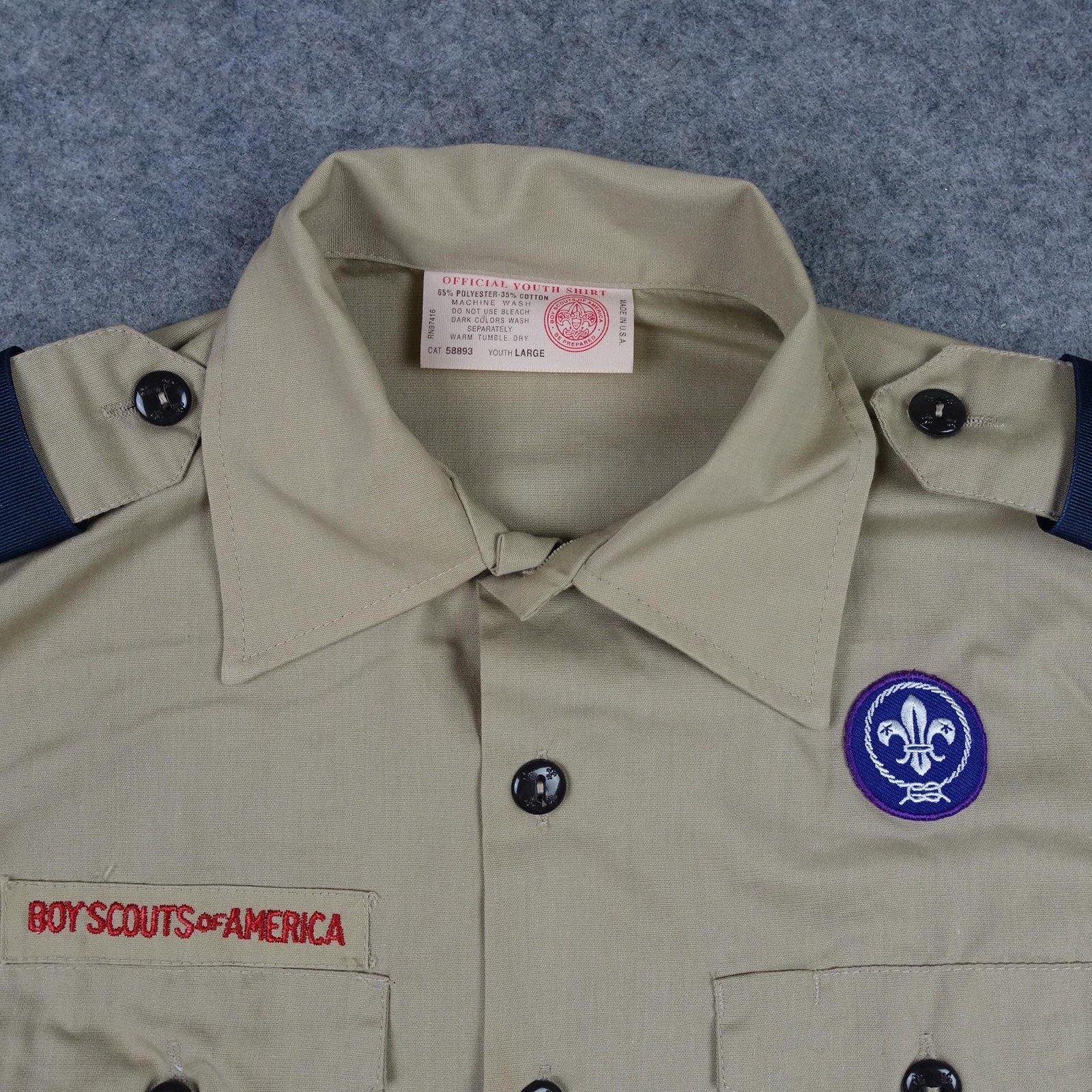 Vintage Boy Scouts of America Shirt Youth Large Long Sleeve Uniform Patch 90s US