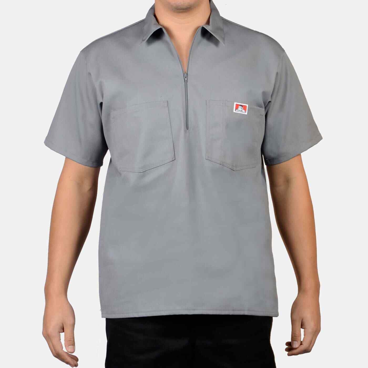 как выглядит Ben Davis Mens Short Sleeve Solid Color Cotton Blend Pockets 1/2 Zip Shirt фото