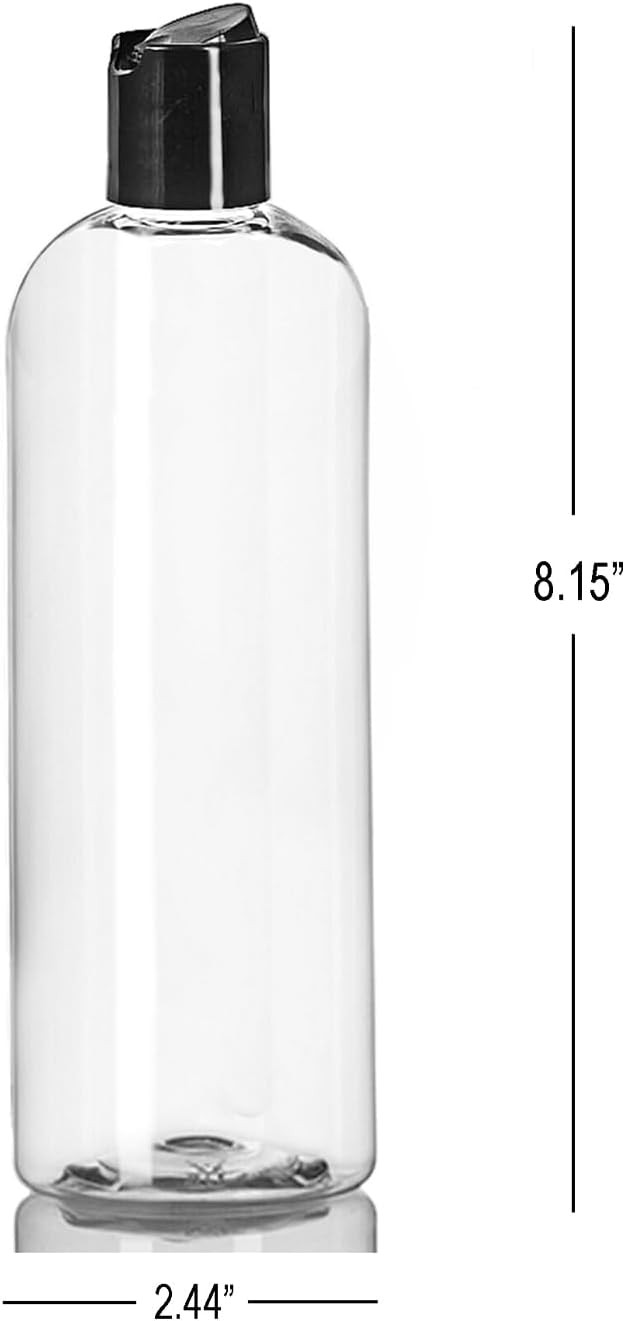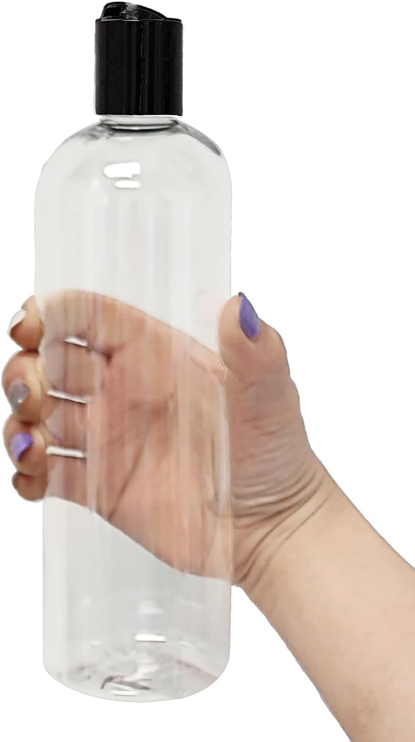 Clear Plastic Empty Bottles with Black Disc Top Caps Refillable