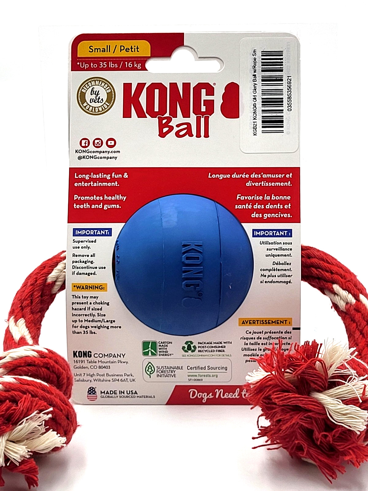 KONG Ball with Rope Small LTD Edition Blue Tug Fetch Chew Dog Toy