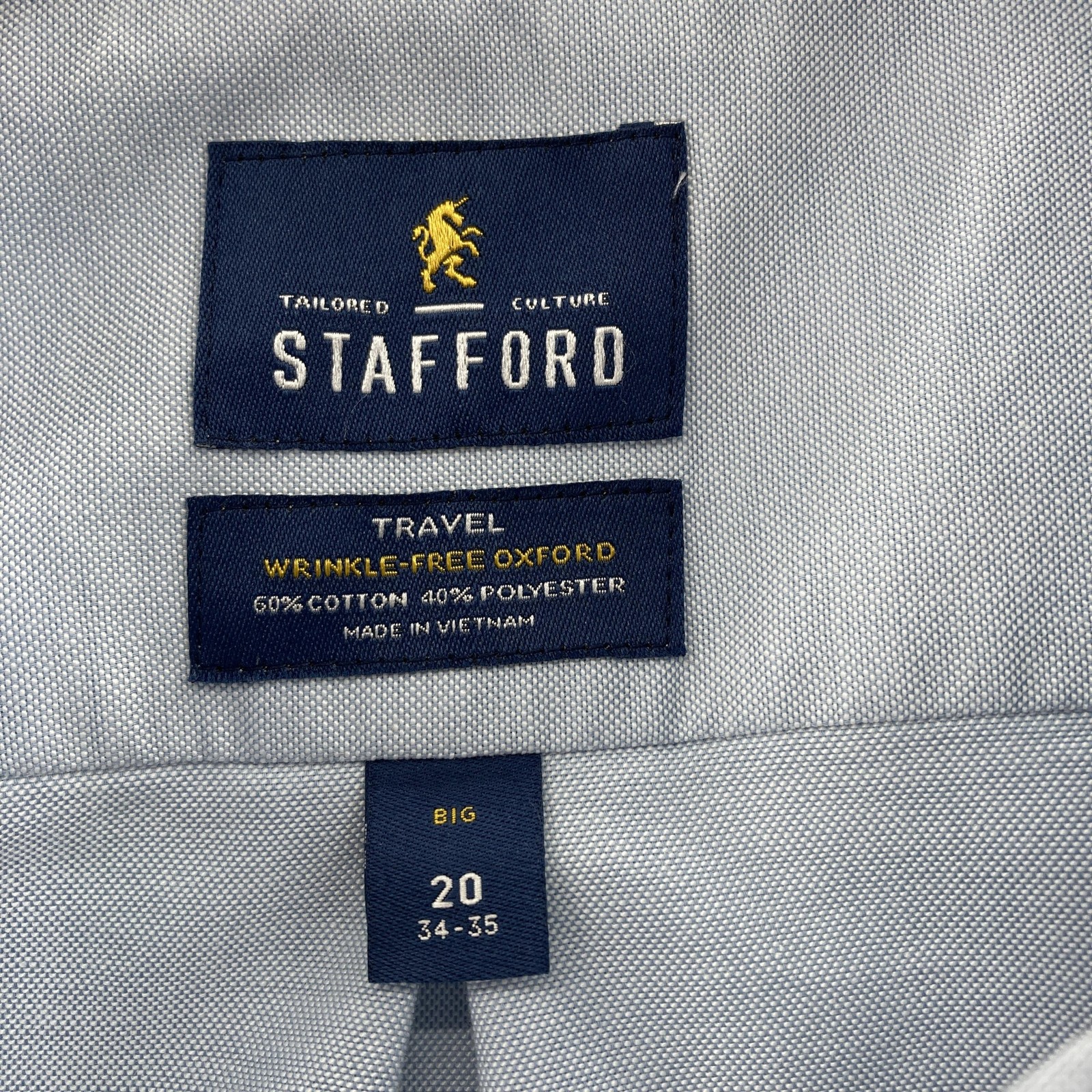 как выглядит Stafford Shirt Men 20 Big 34-35 Travel Wrinkle Free Oxford Dress Work Business фото