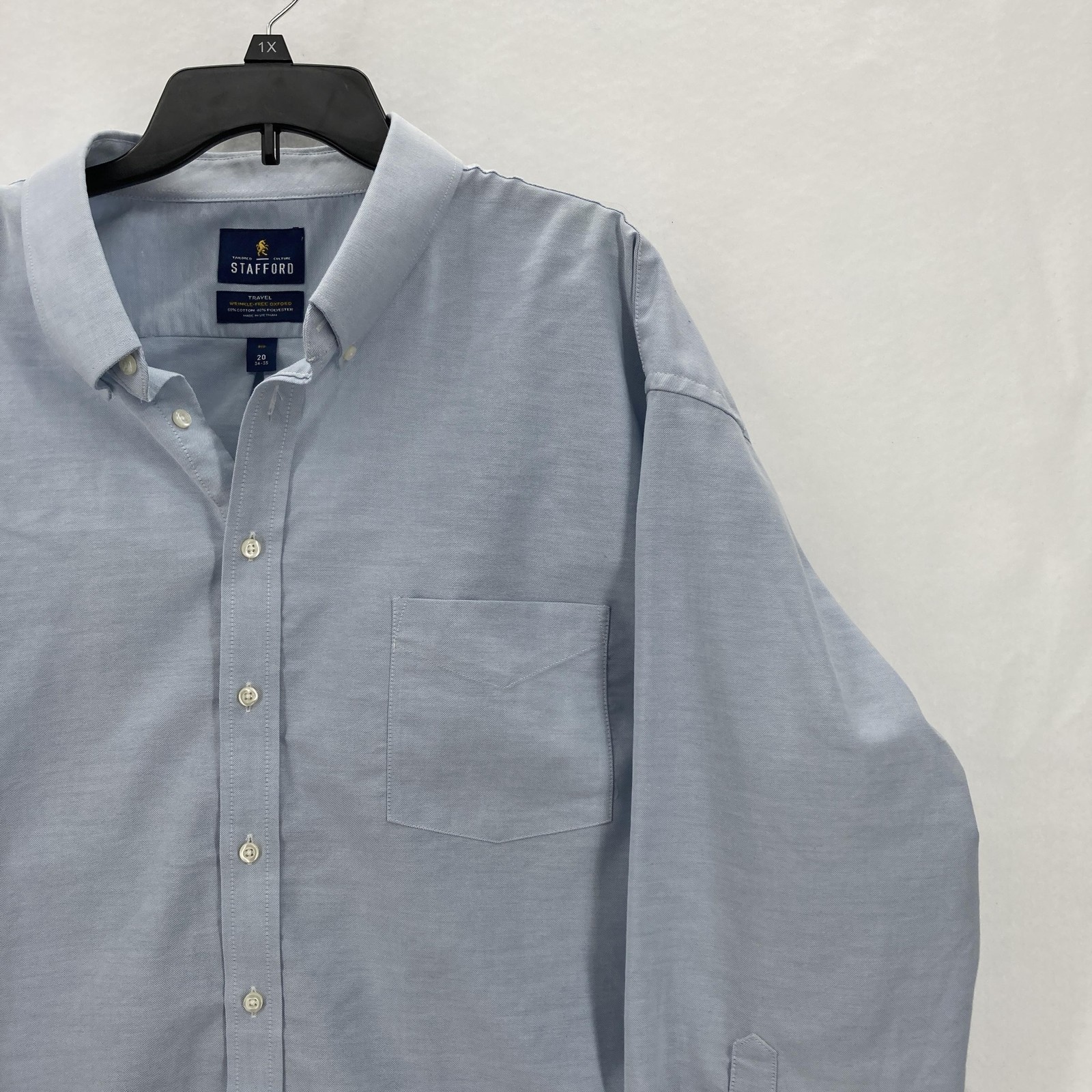 Stafford Shirt Men 20 Big 34-35 Travel Wrinkle Free Oxford Dress Work Business