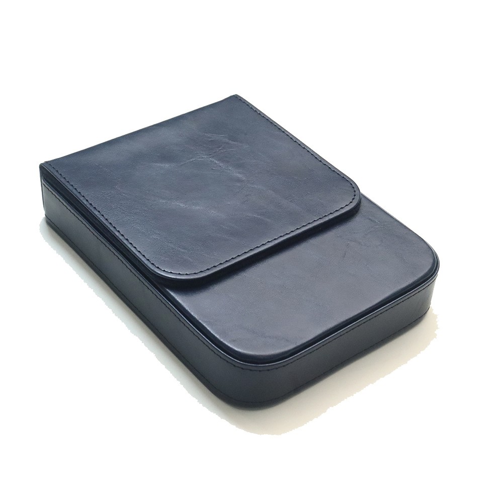 Leather 6 Slots Hard Fountain Pen Case Stationery Storage Box Organizer Blue