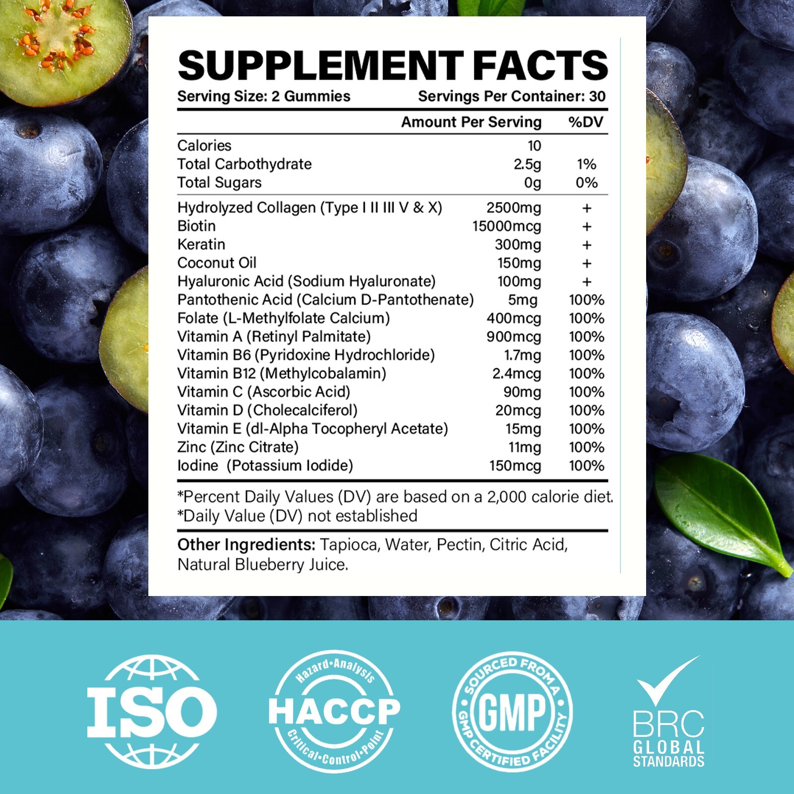 Ingredients: Tapioca, Water, Pectin, Citric Acid,Natural Blueberry Juice.