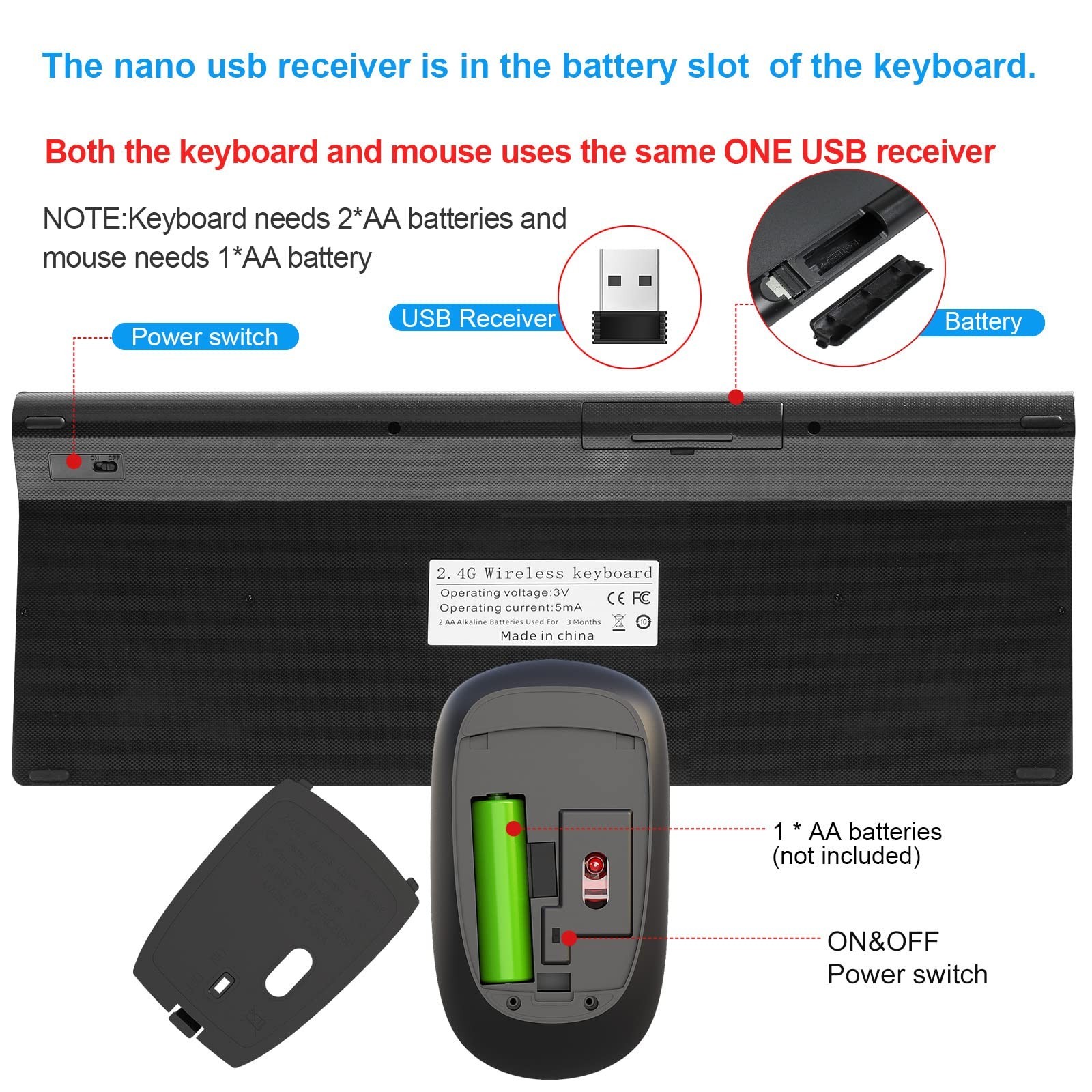 как выглядит HXMJ-Wireless Large Print Keyboard and Mouse Set with USB Receiver Quiet Sci... фото