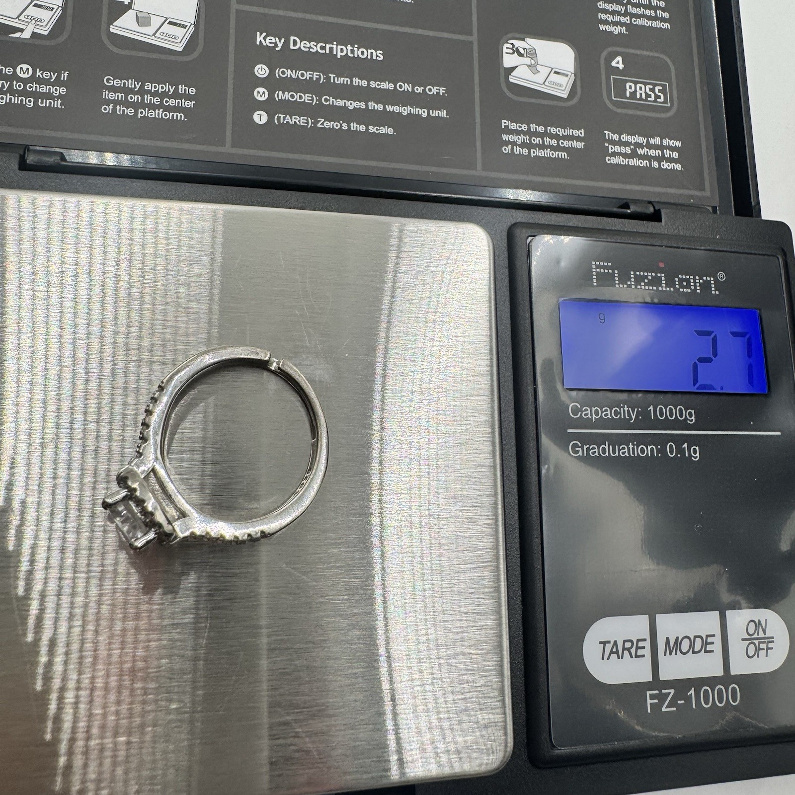 Vtg Square Cut Cubic Zirconia Silver S925 Engagement Wedding Adjustable Ring
