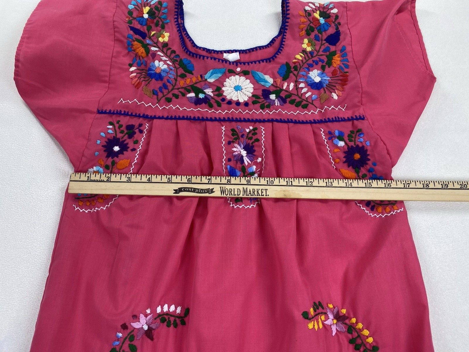 как выглядит Handmade Pink Mexican Girls Boho Floral Embroidered Puebla Dress фото