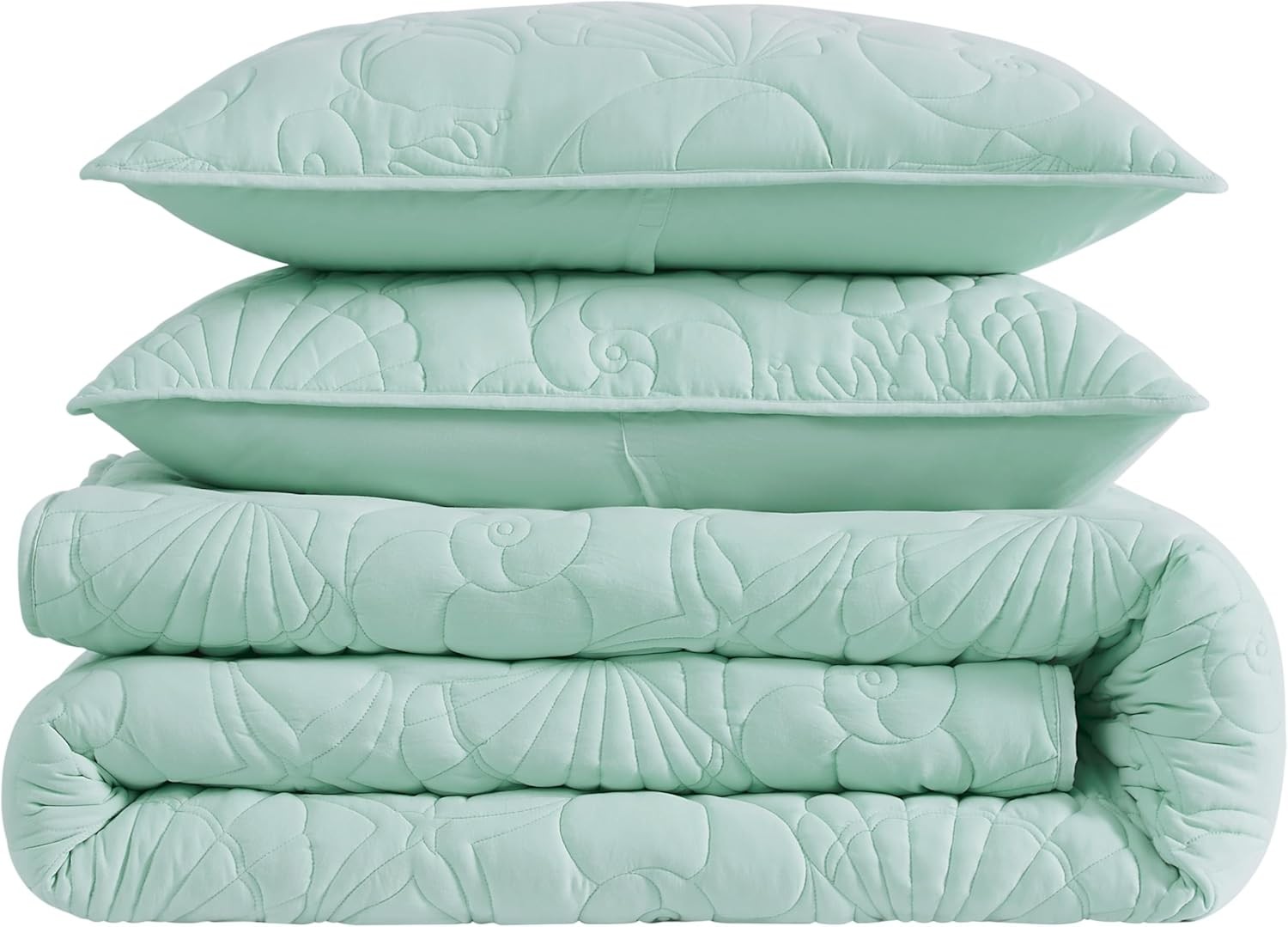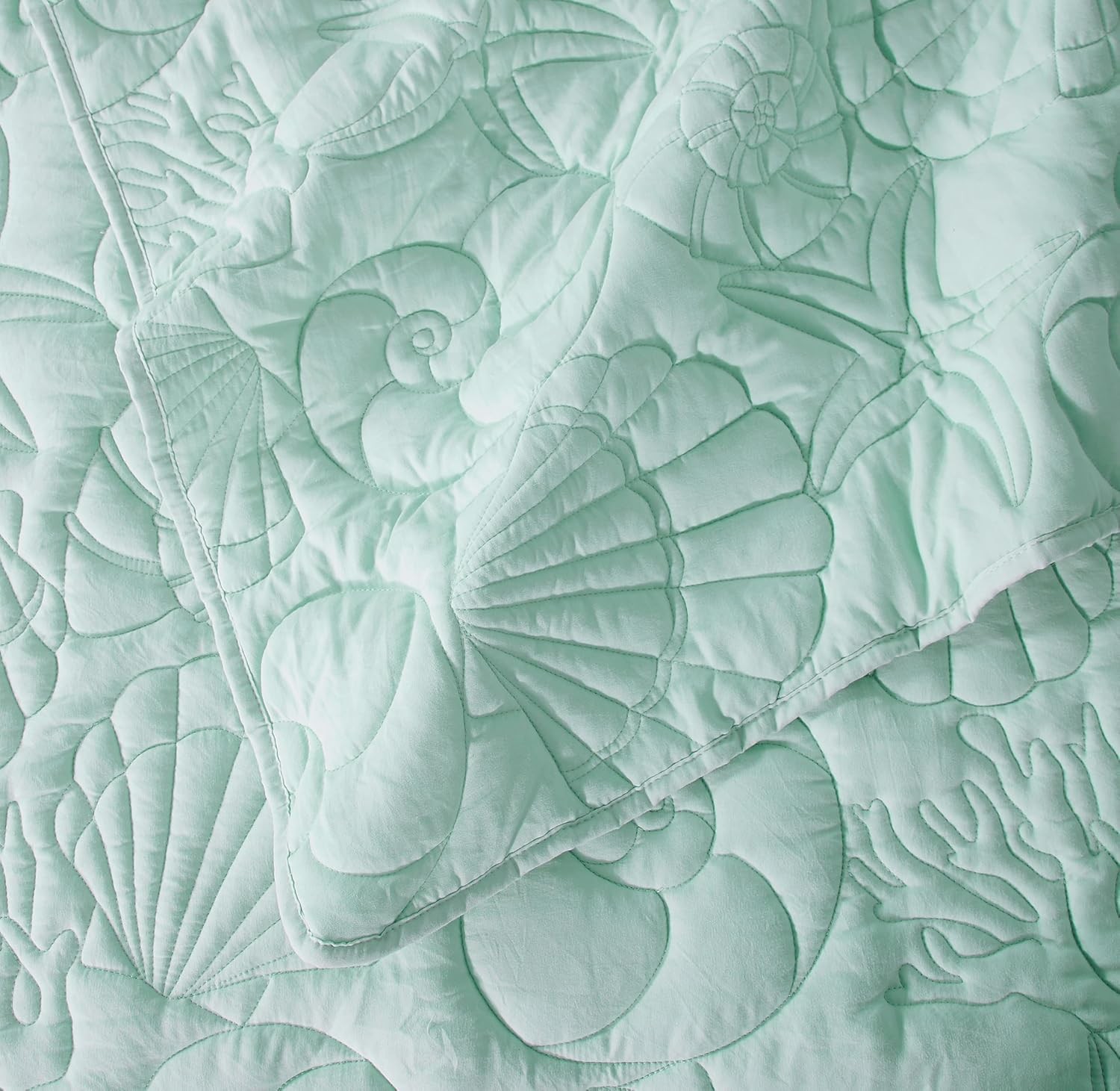 как выглядит Coastal Beach Queen Size Quilt Bedding Sets, Seafoam Green Nautical Tropical фото