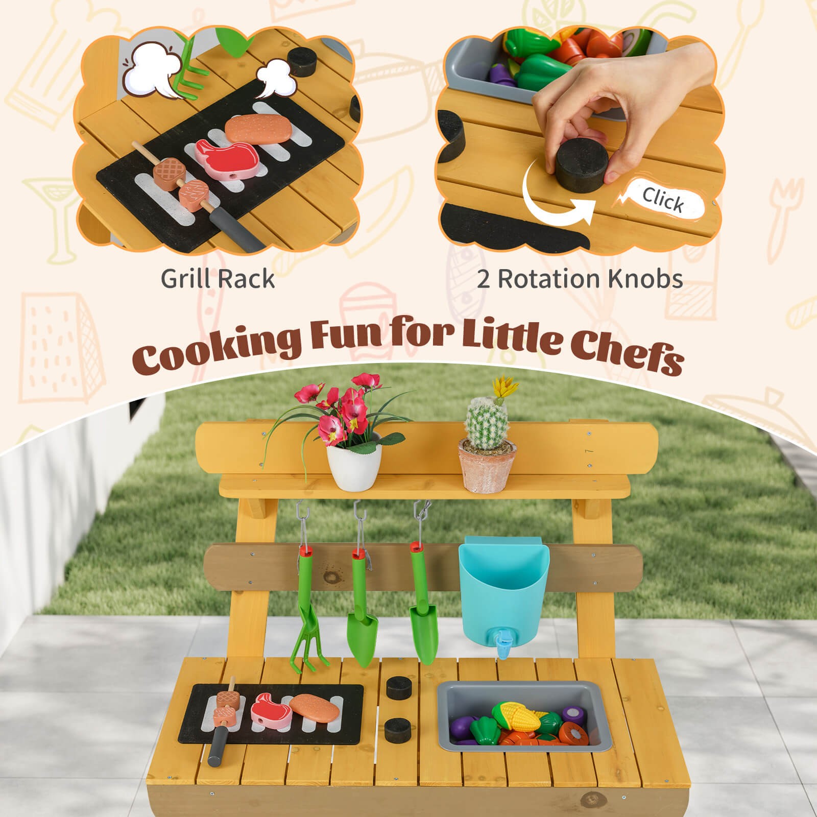 Play Kitchen for Kids with Removable Faucet Sink Grill Rack Rotation Knobs