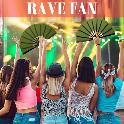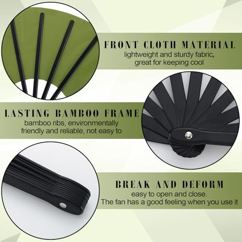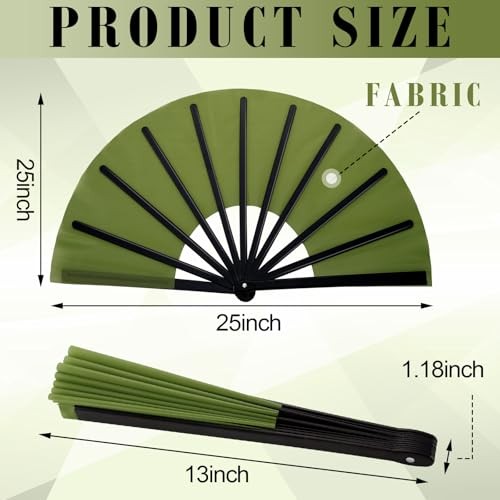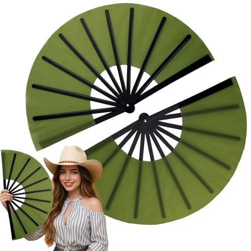 2 Pcs Large Clap Fans for Line Dancing 13 Inches Folding Green Simple Pattern