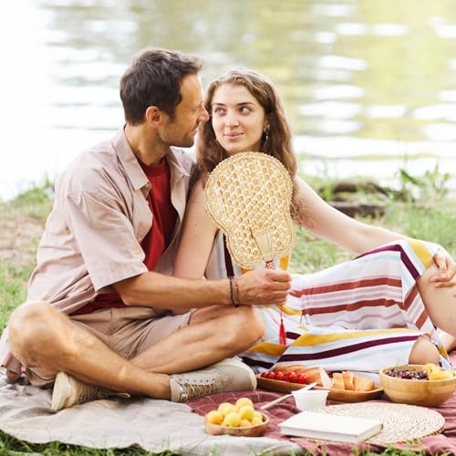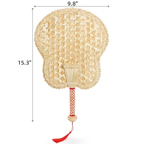 2 Packs Hand Woven Fan, Handheld Wheat Straw Fans, Rustic Chinese Manual Fan