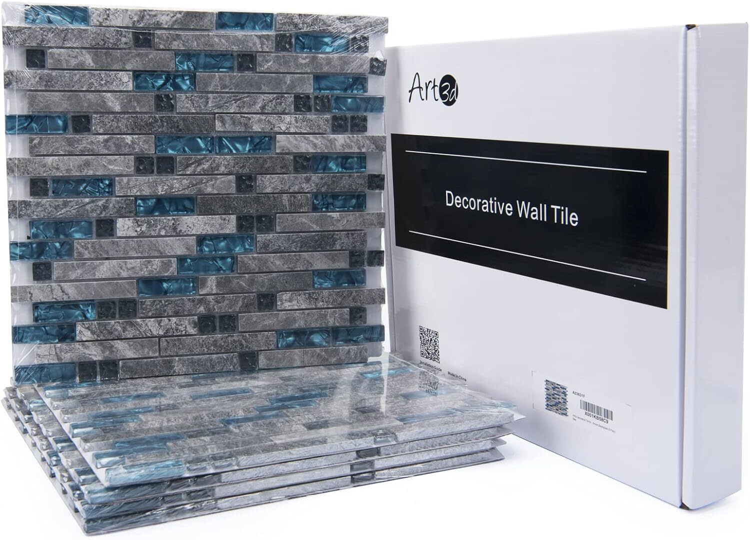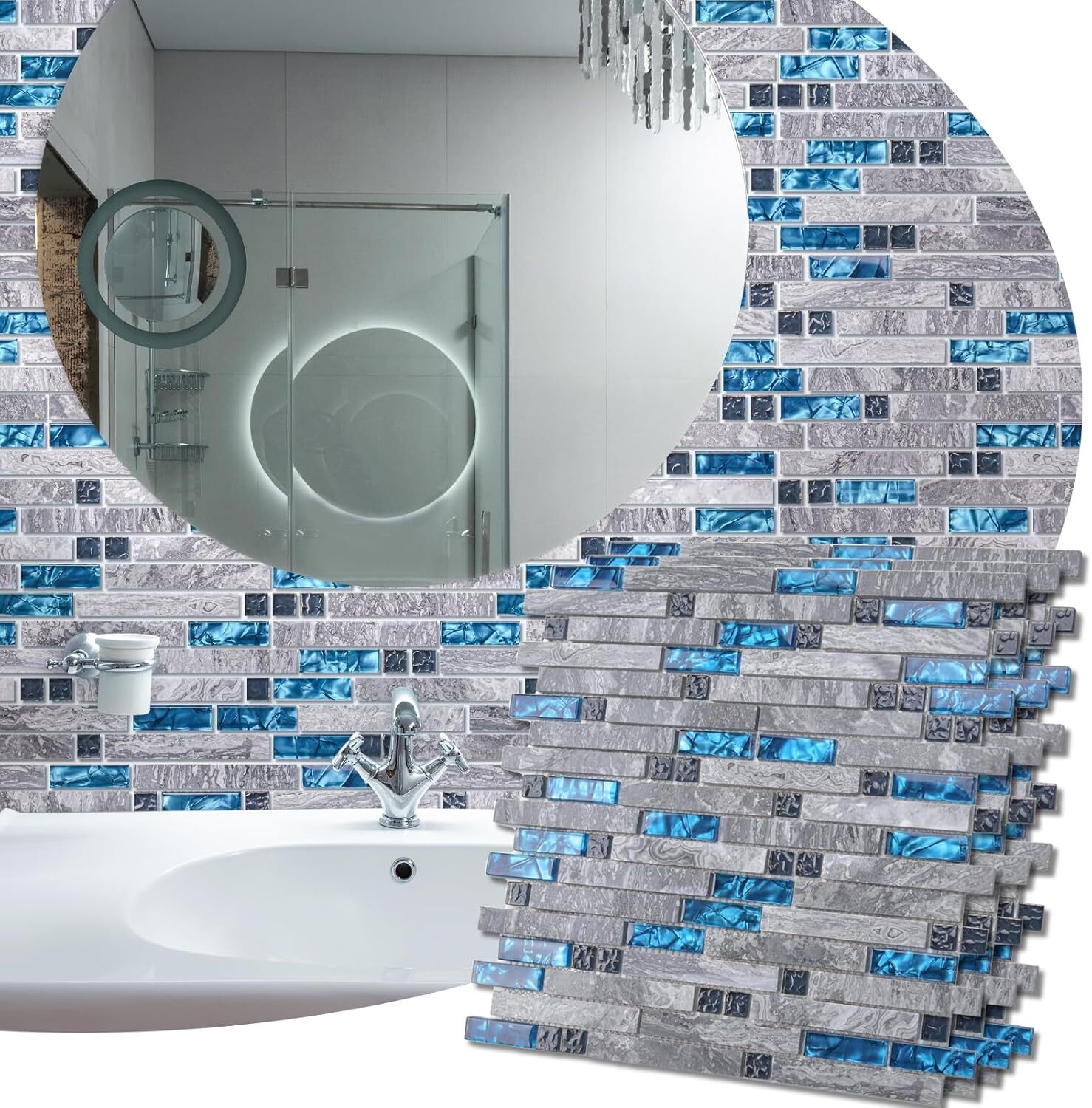 grout Decorative Tile, Blue/Gray, Glass, for Kitchen Backsplash 5 Pack