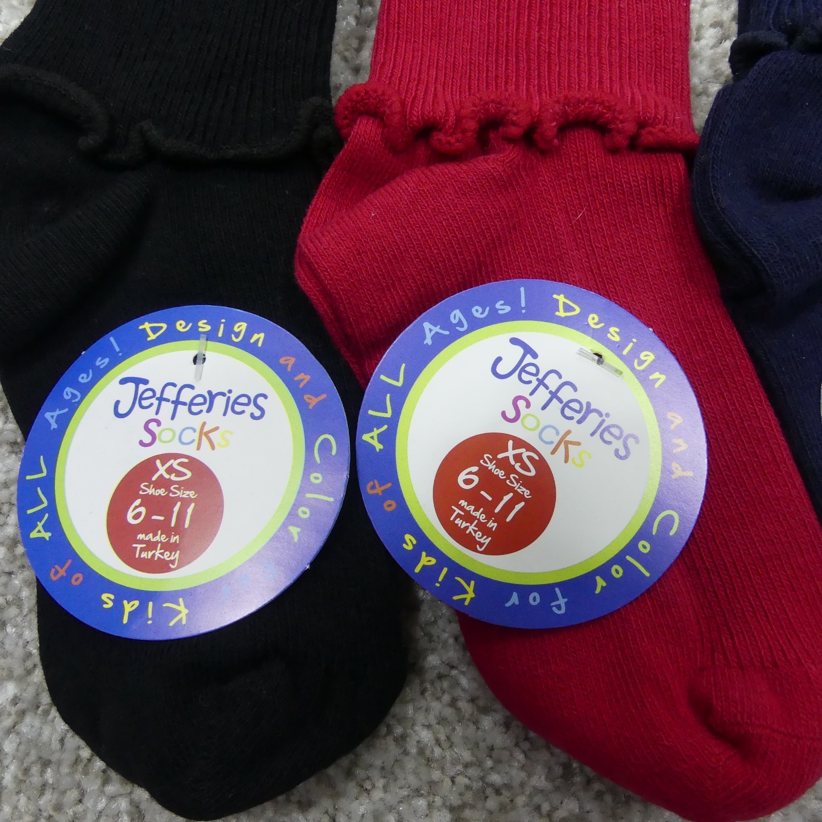 Jefferies Socks Socks Girls Extra Small Fits Shoe SIze 6-11 Turn Cuff 4 Pair