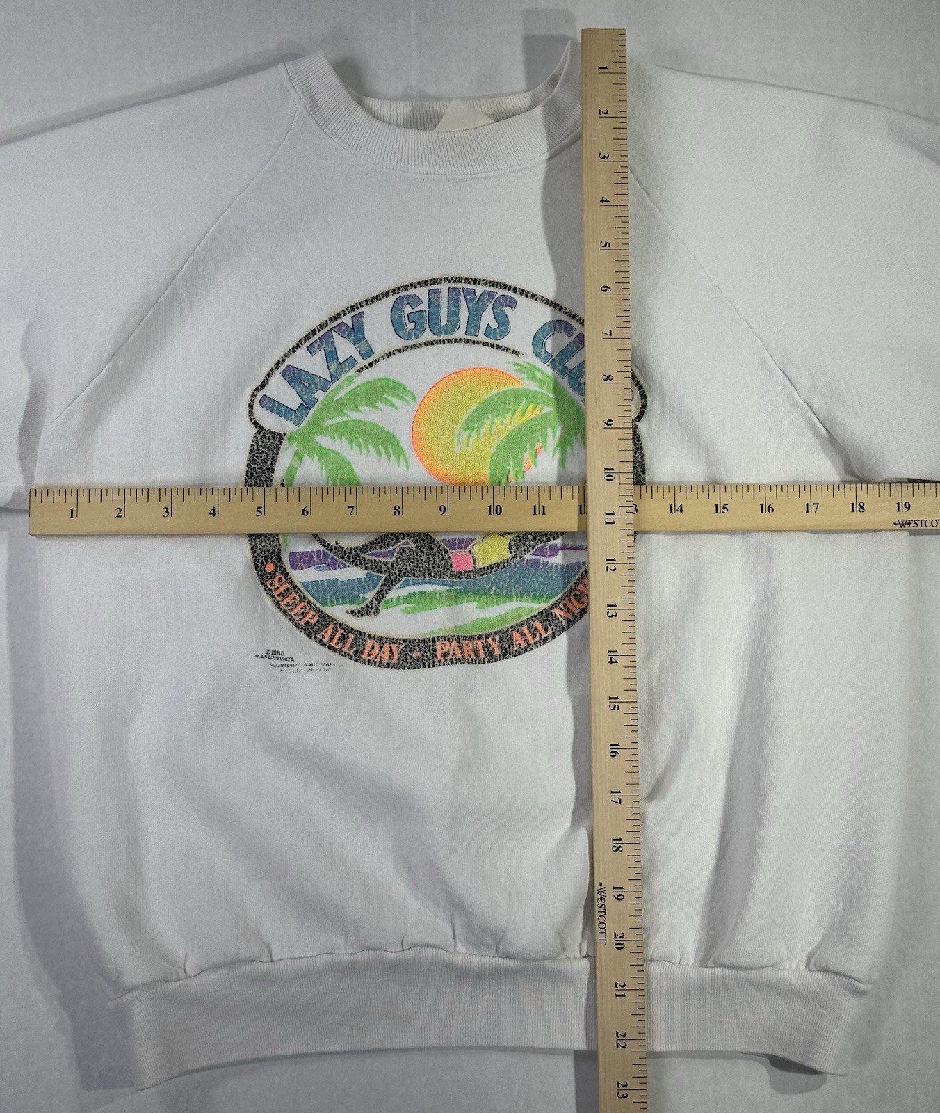 как выглядит Vintage 80s Lazy Guys Club Sweatshirt M White Pullover Sleep All Day фото