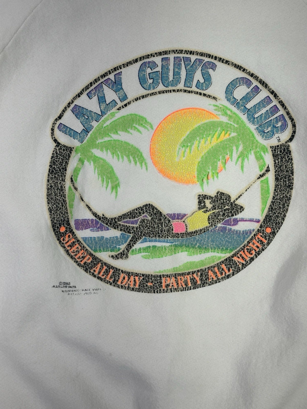 Vintage 80s Lazy Guys Club Sweatshirt M White Pullover Sleep All Day