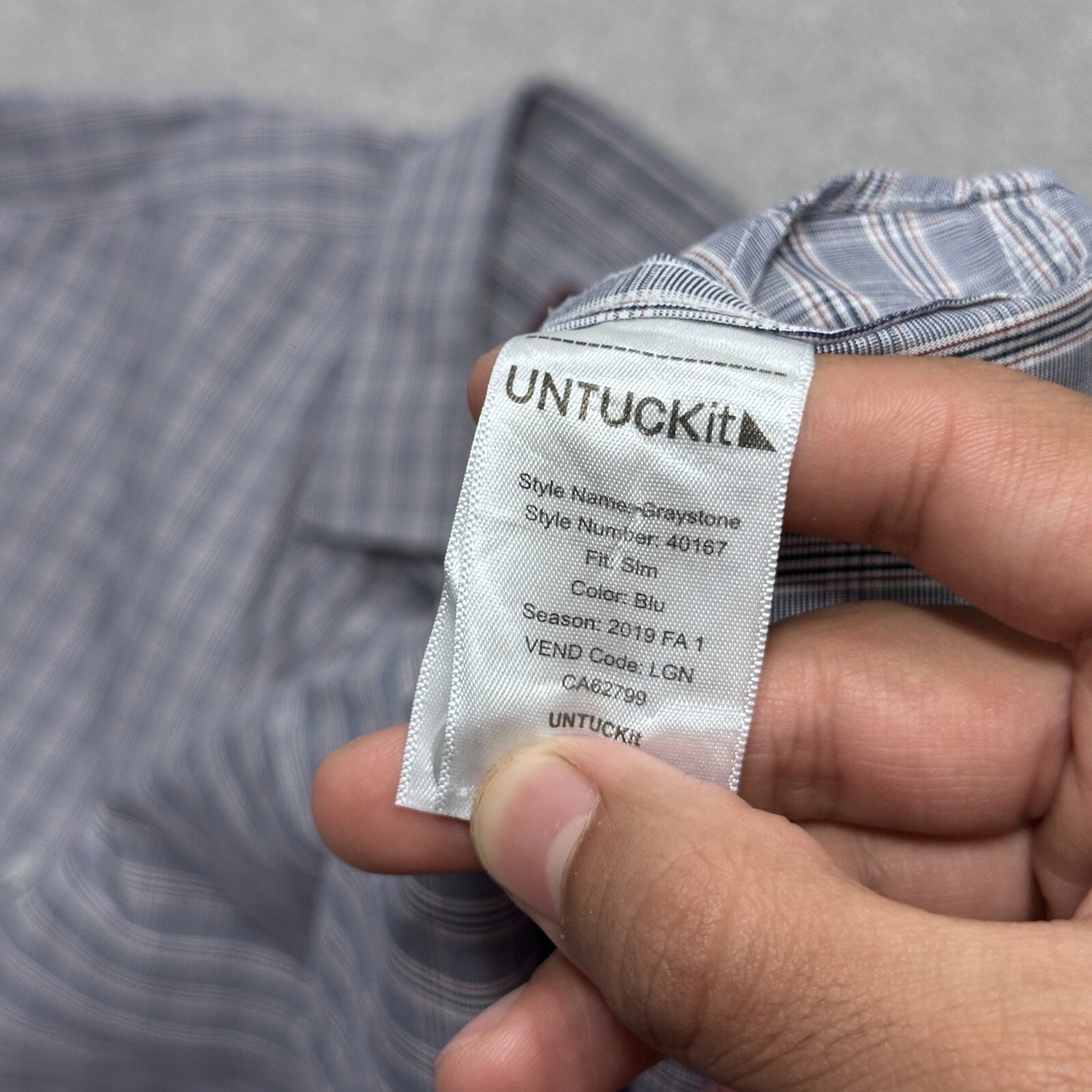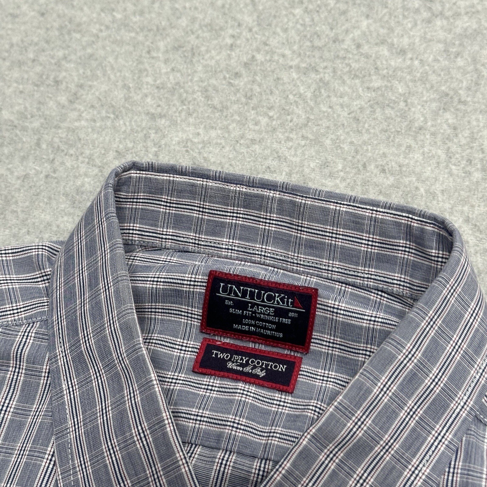 UNTUCKit Shirt Men s Large Blue Plaid Two Ply Cotton Graystone WF Button Up