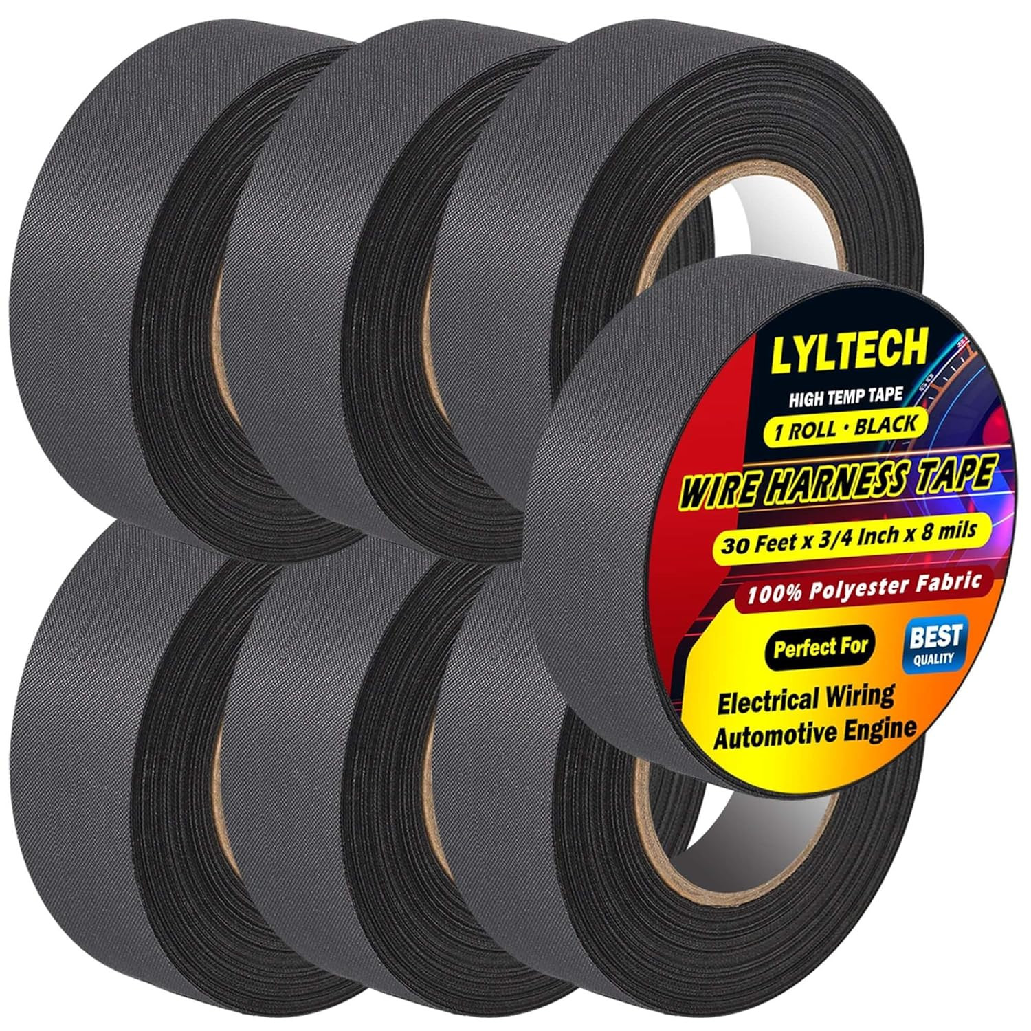 Wire Harness Tape 7 Rolls, Polyester Fabric,Flame Retardant,At 257 to -40 , Wir