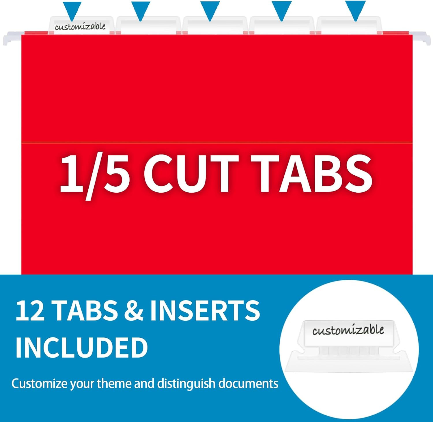 12 Pack Hanging File Folders, Letter Size with 1/5-Cut Adjustable Tabs, 12 Selec