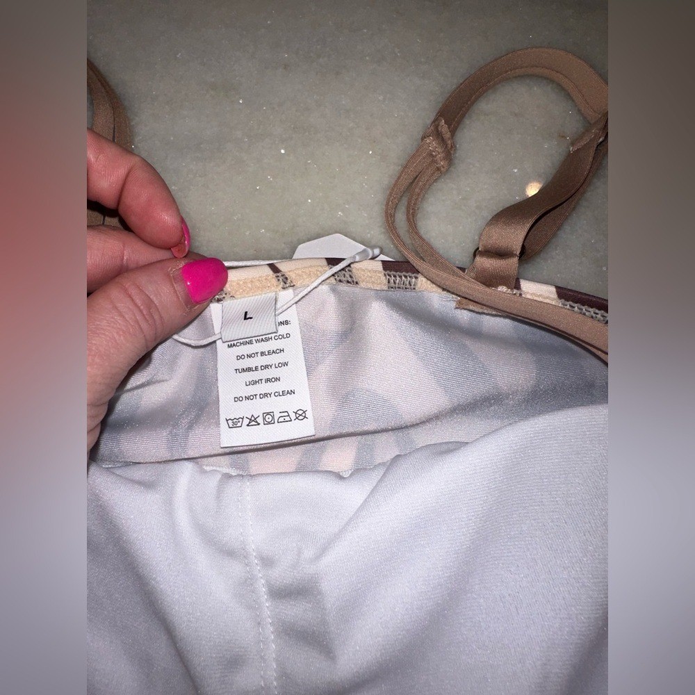 как выглядит NWT Zebra Size Large Print Tan Brown Tankini Bathing Suit Swimsuit 2 Piece Set фото