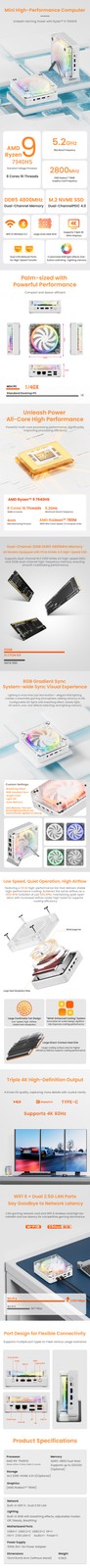 AMD Ryzen 9 7940HS Mini PC 16GB RAM 256G NVMe Windows 11 WiFi 6 DDR5 4800Mhz