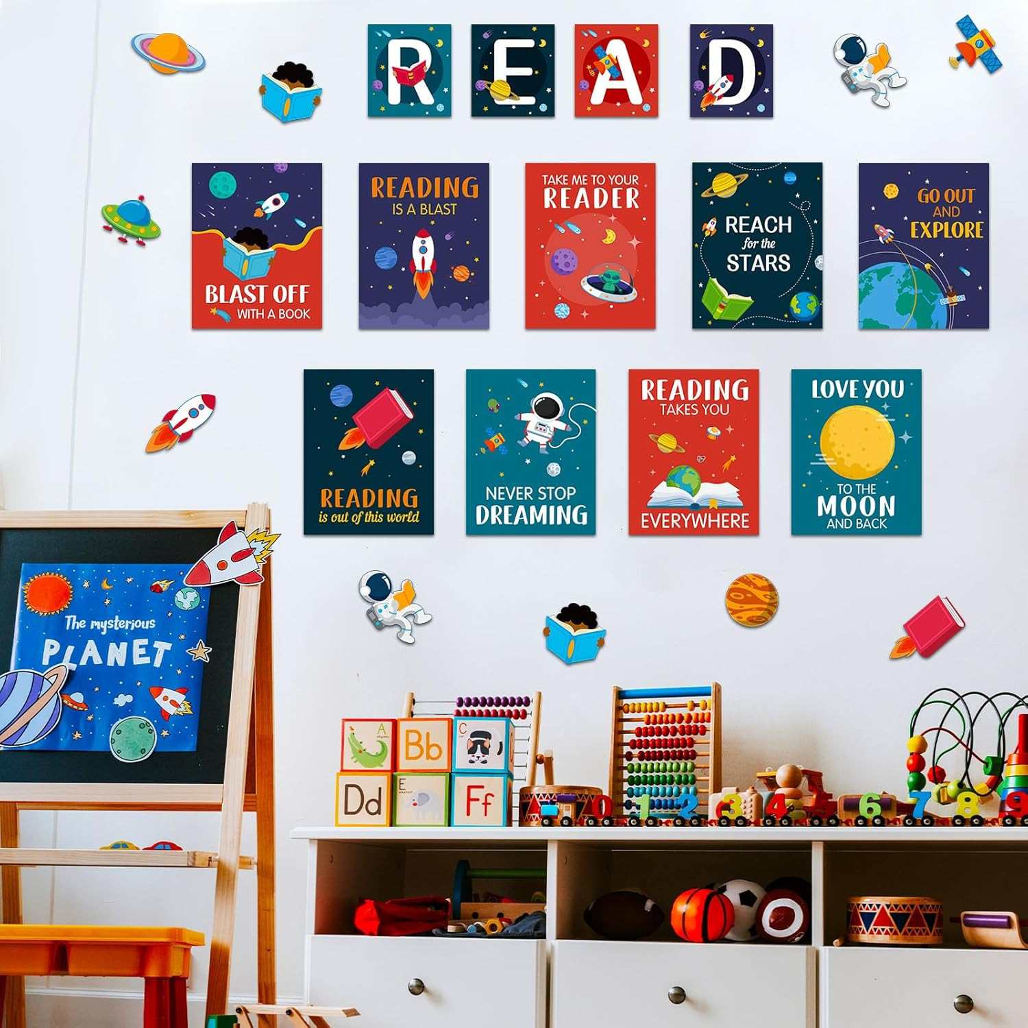 как выглядит 23 Pcs Space Bulletin Board Decorations Set Reading Classroom Decorations Edu... фото