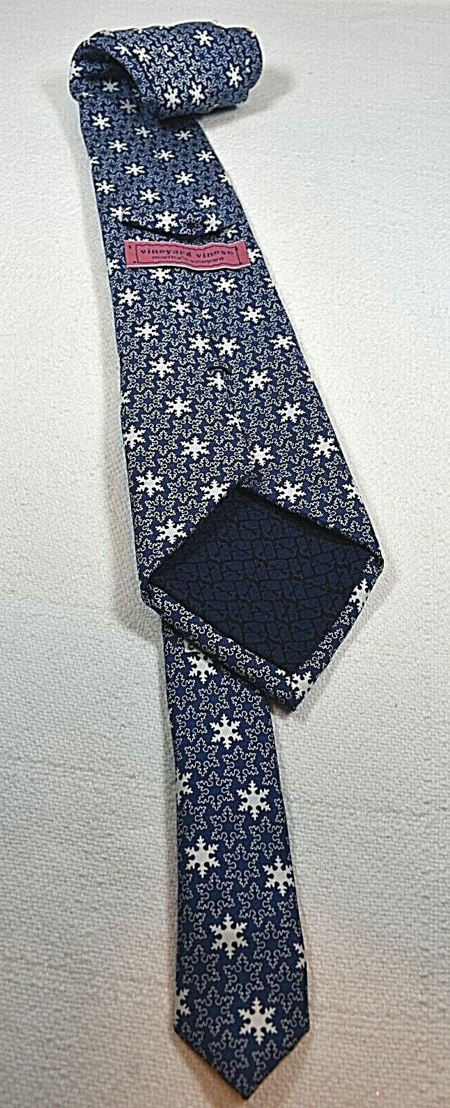 Vineyard Vines Luxury Silk Tie w/Blue White Snowflakes Hand Picked by Shep Ian