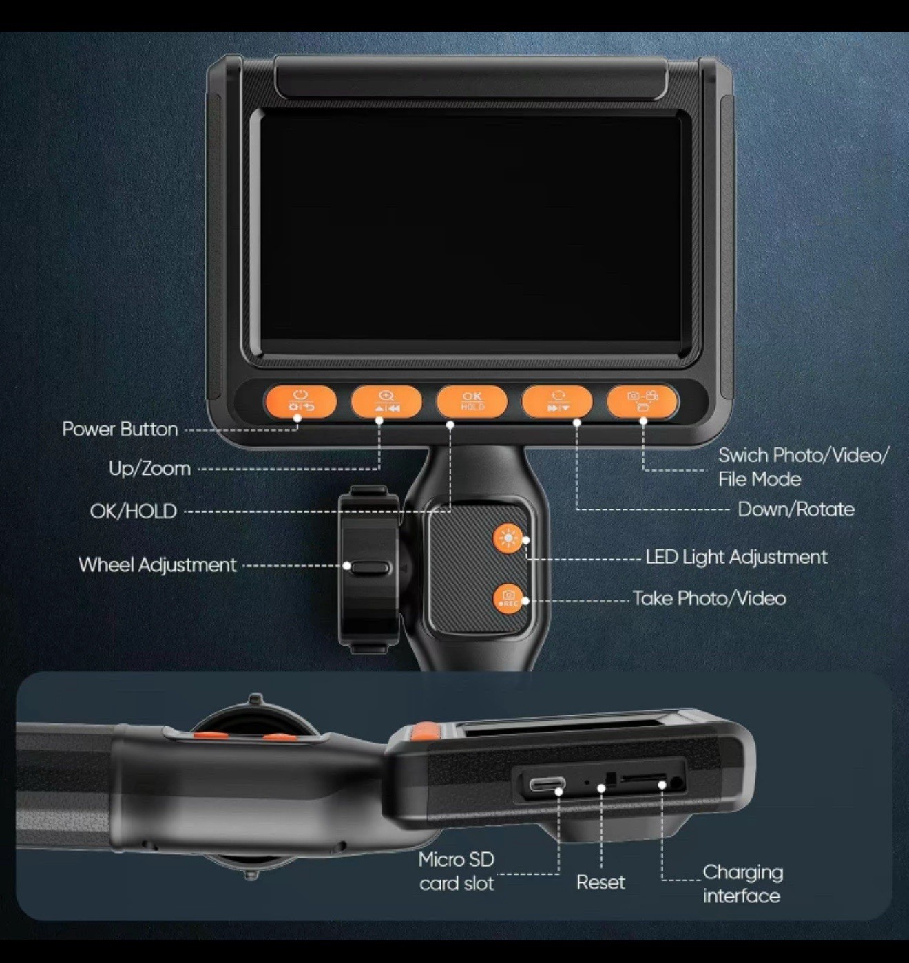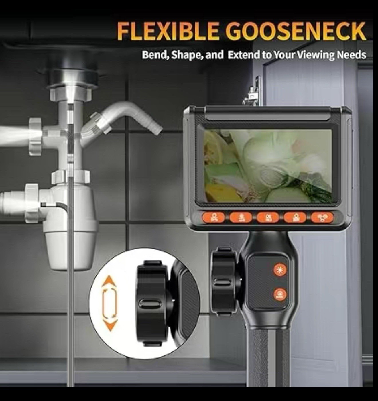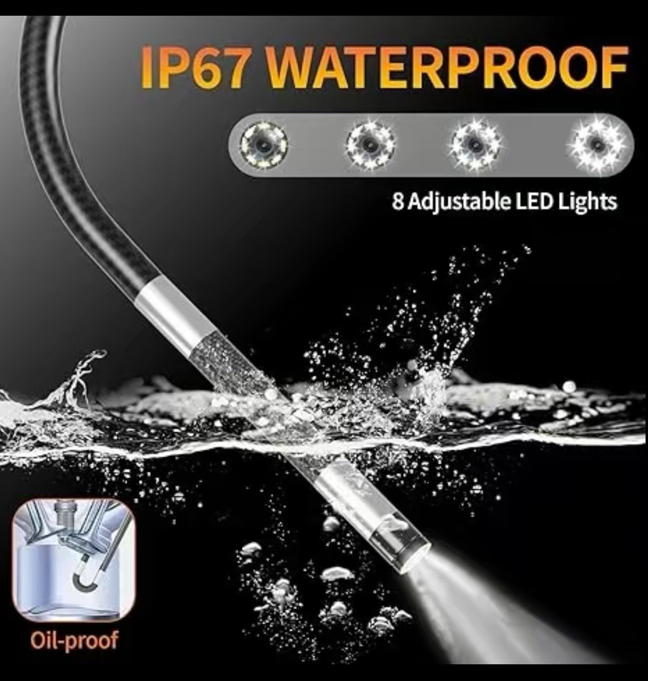 • 360 Articulating Borescope with 5.5FT Semi-Rigid Cable 32GB Card, Two-Way HD