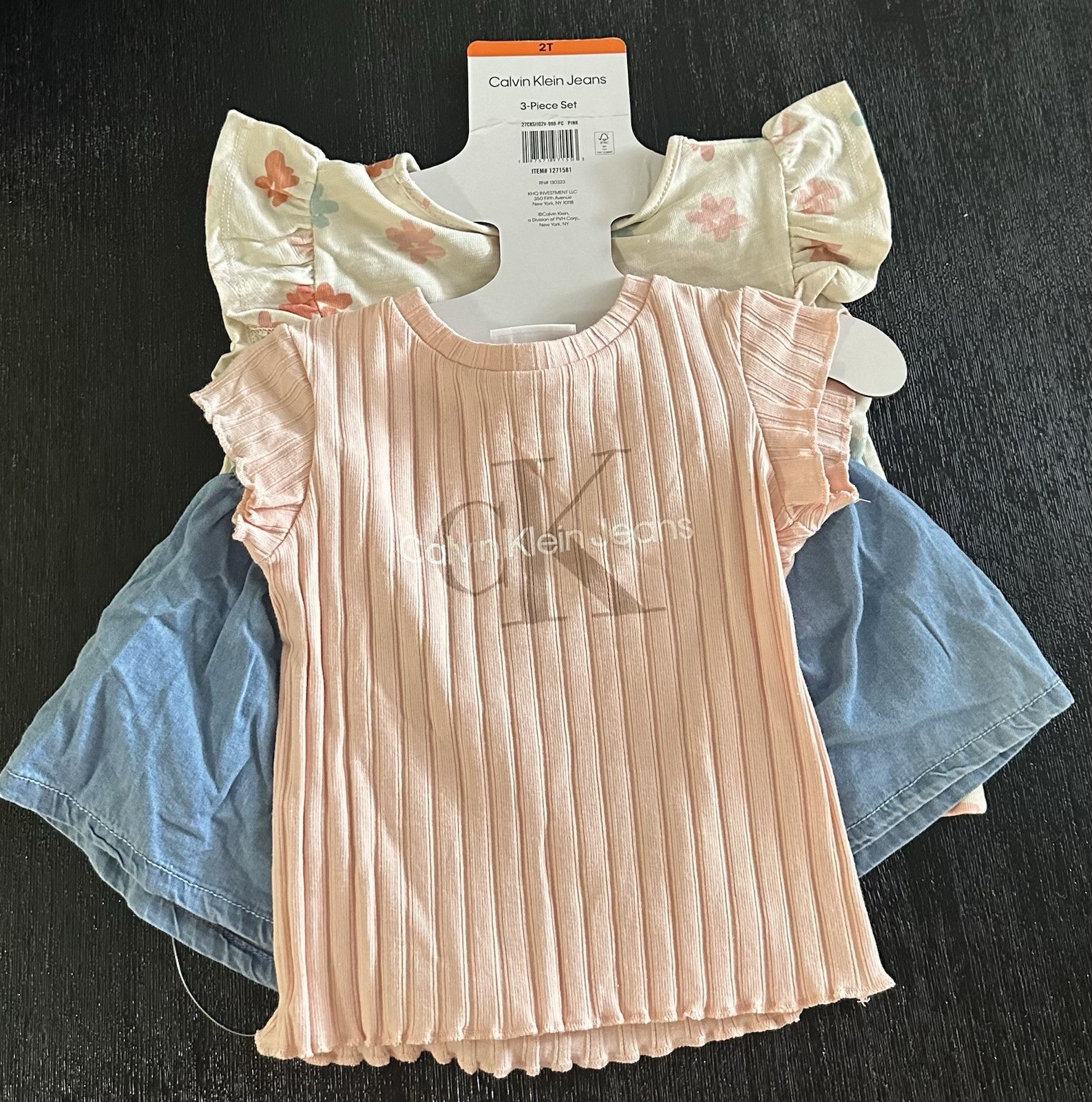 Calvin Klein Kids' 3-Piece Cotton Set Pink Floral Blue Shorts New W/Tags 2T