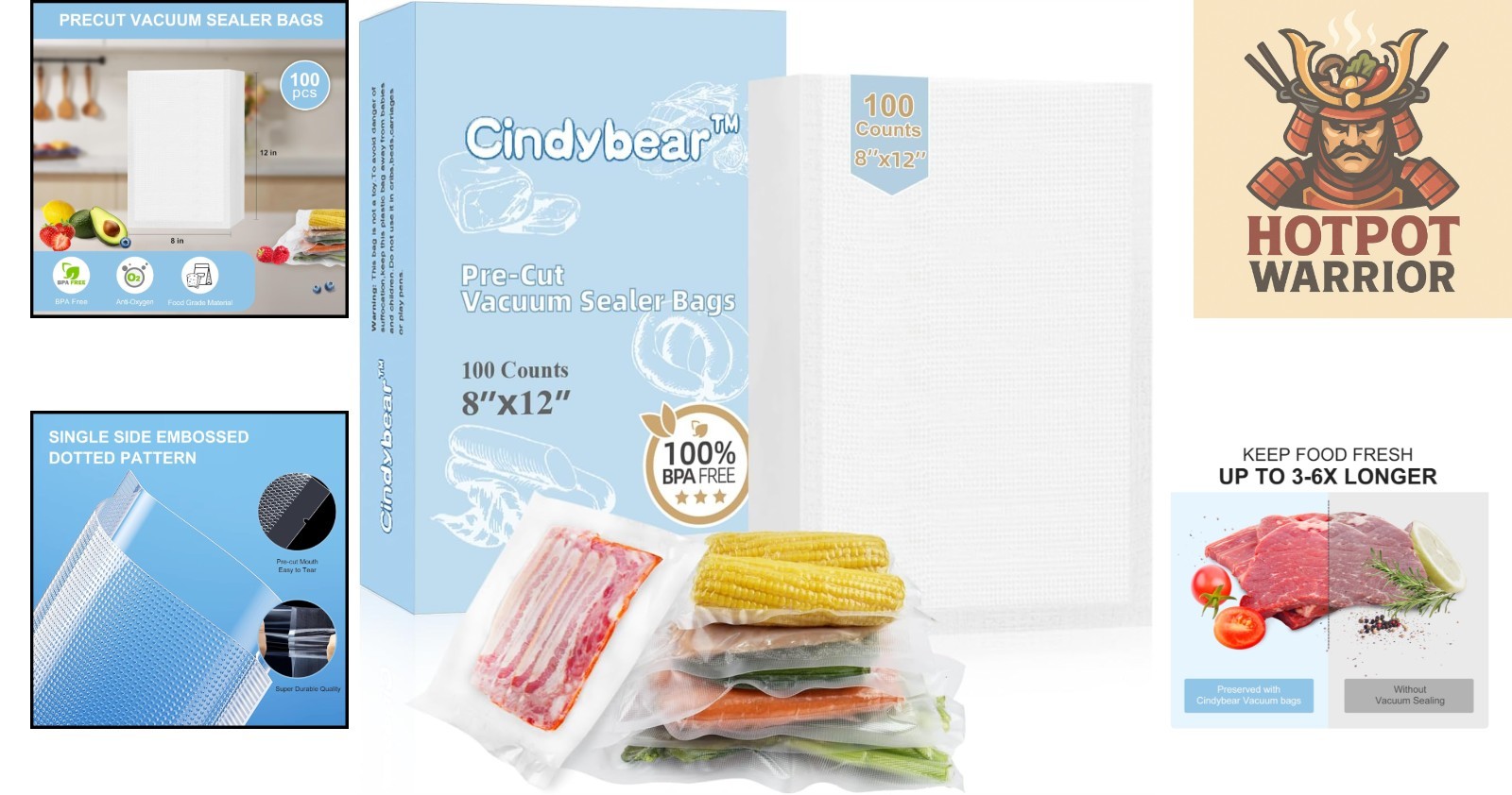 Included Components: 100 Vacuum Sealer Bags For Food