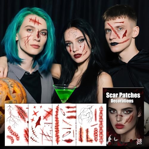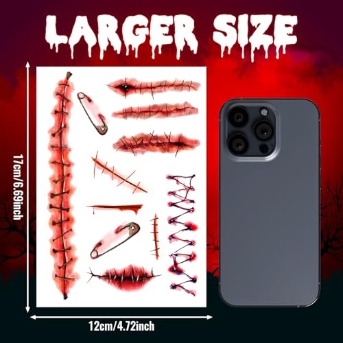 Halloween Decorations, Zombies Fake Scars Temporary Tattoos No Bloody Scars