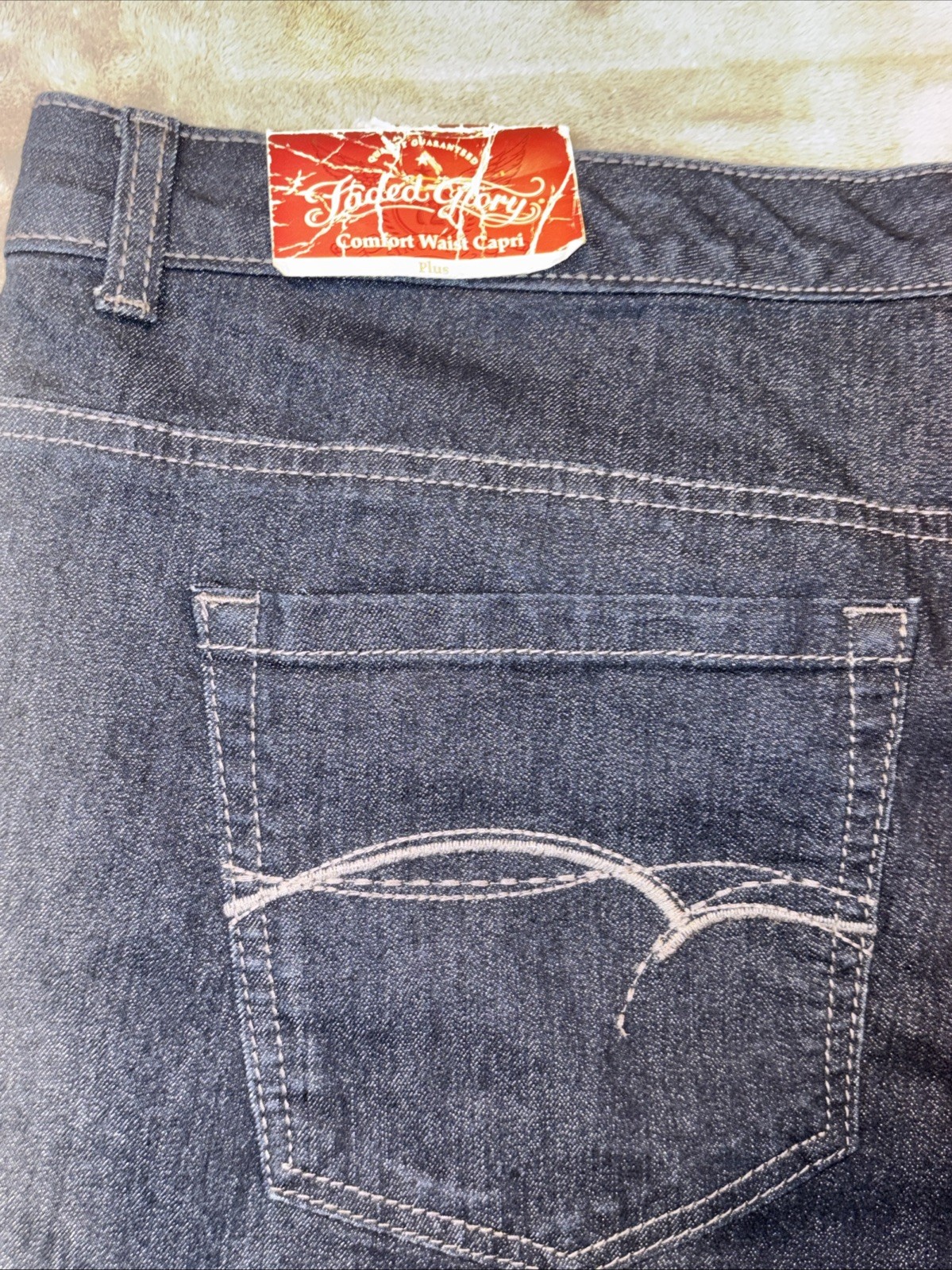 как выглядит New Womens Faded Glory Denim Comfort Waist Capri Plus Size 24W фото