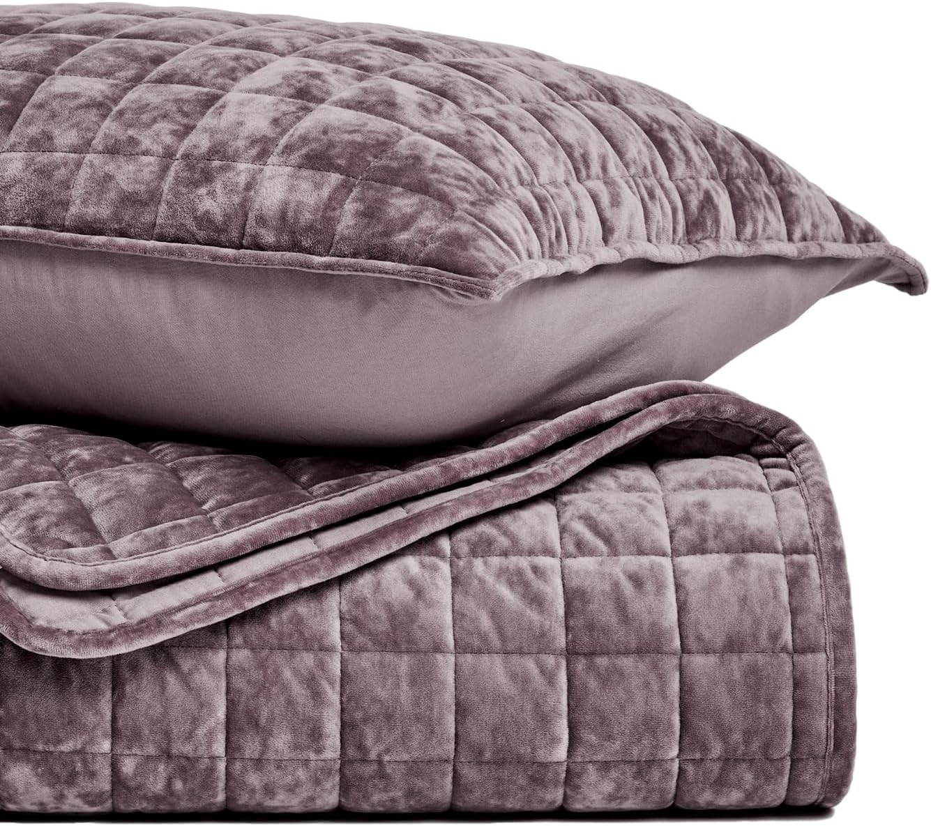 RECYCO Luxury Velvet Quilt King Size Ultra Soft Velvet Bedding Sets Mauve Purple