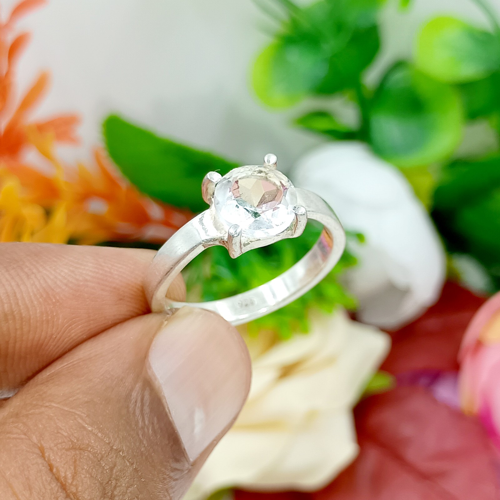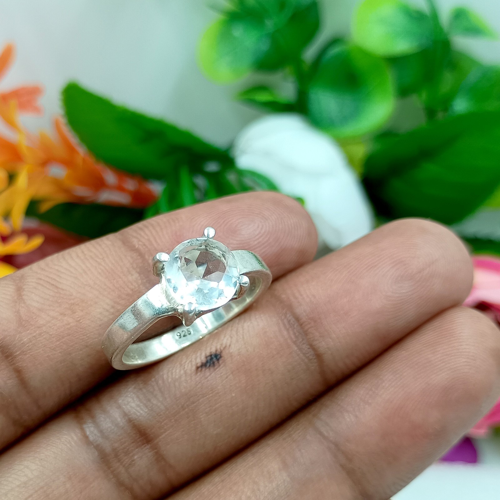 Natural Crystal Quartz Solitaire Ring 925 Sterling Silver Handmade Gemstone Jewe