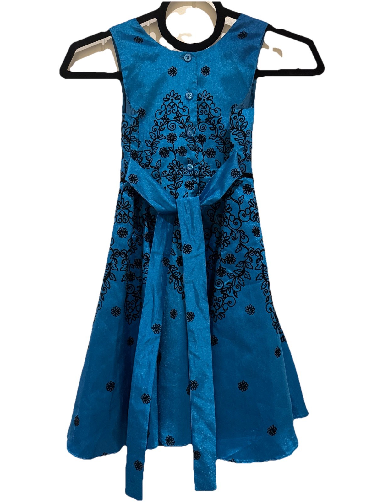 как выглядит Jona Michelle Size 6 Girl s Blue Satin Flocked Sleeveless Special Occasion Dress фото