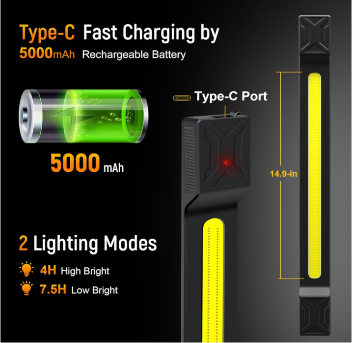 Underhood Work Light, 2600LM High Bright 5000Mah Rechargeable Magnetic LED Work