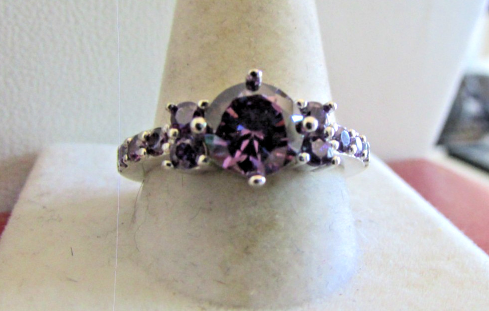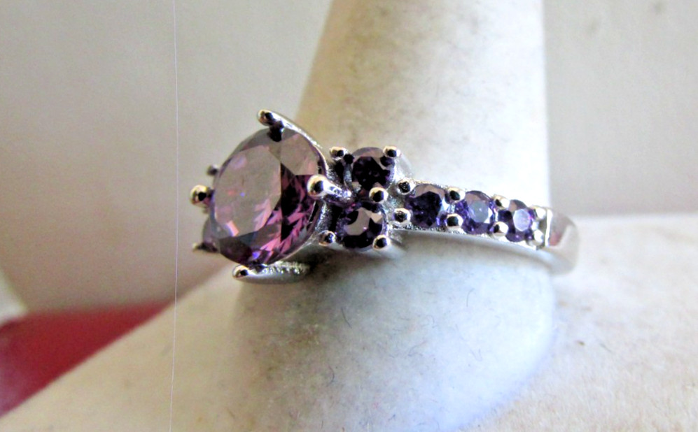 как выглядит .85 cwt. Amethyst Ring in Sizes 5, 7 7 3/4 set in 925 Sterling Silver фото