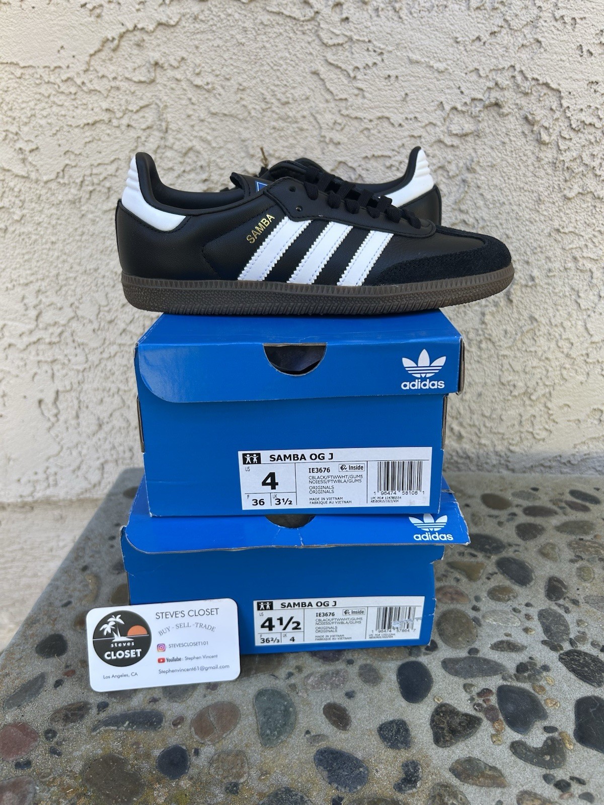 adidas Samba OG Black White Gum Grade School Sneaker IE3676 4y And 4.5y