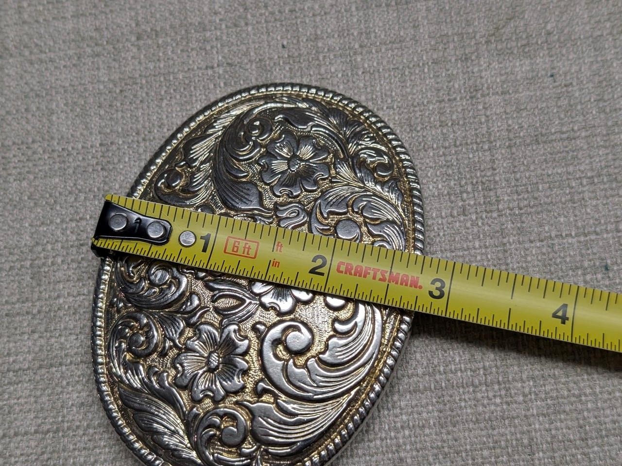 как выглядит vintage WESTERN belt buckle CHAMBERS floral 24K GOLD PLATE engraved COWBOY фото