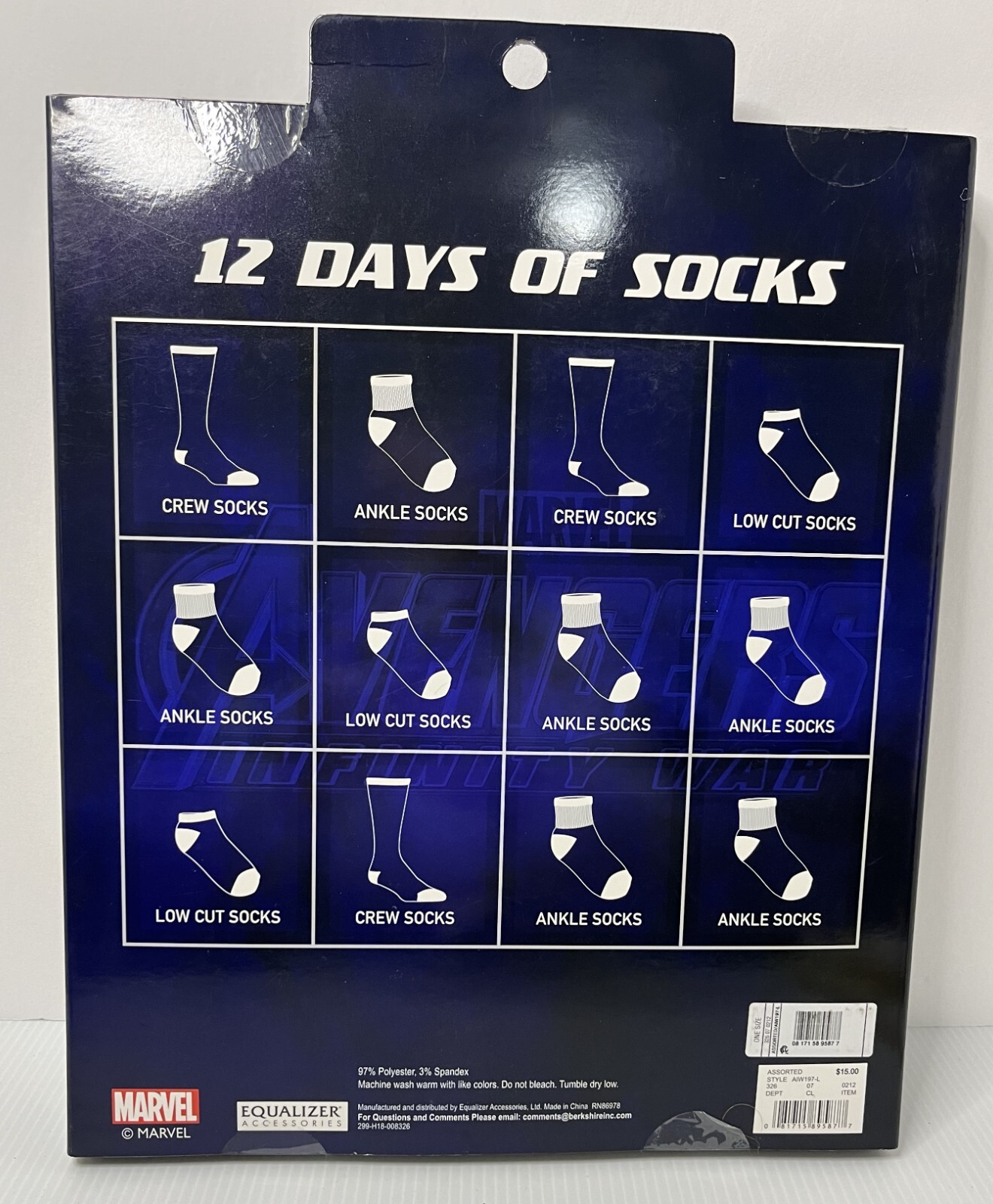 как выглядит Socks 12 DAYS Boys Size Large -Marvel AVENGERS Infinity War Iron Man Thanos фото