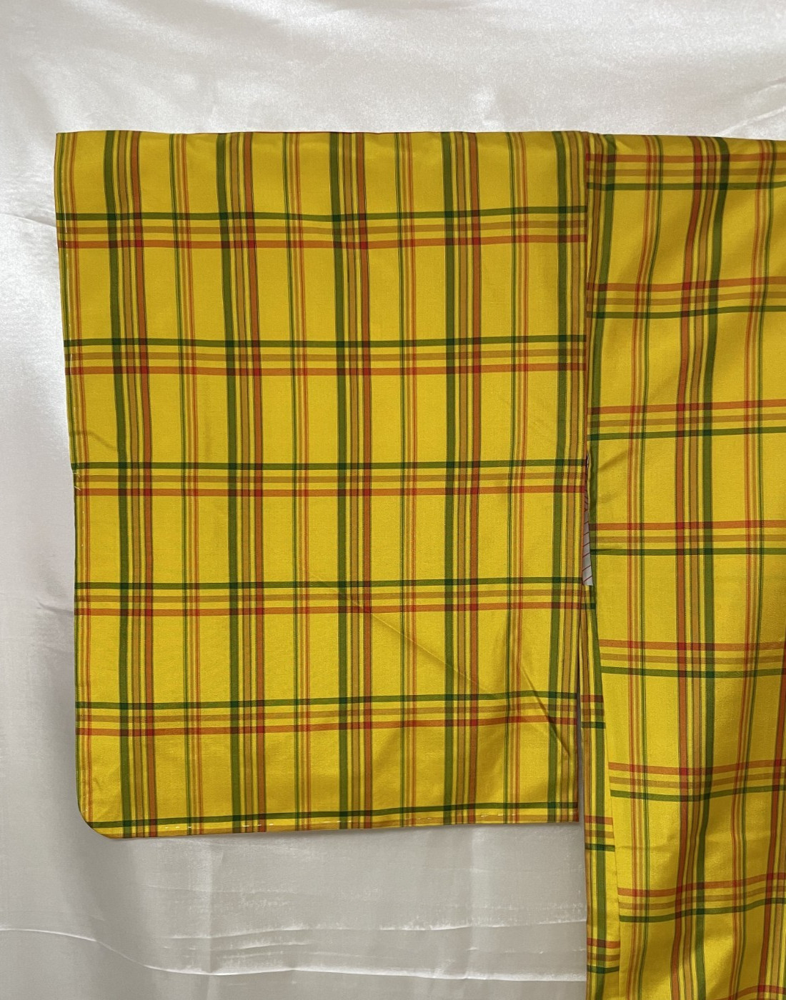 как выглядит Japanese Kimono Haori Yellow Red Green Stripe Checkered Pattern Pre-owned фото
