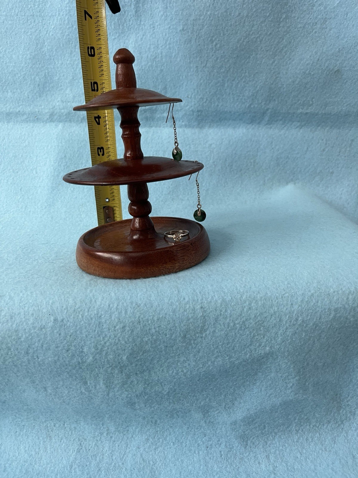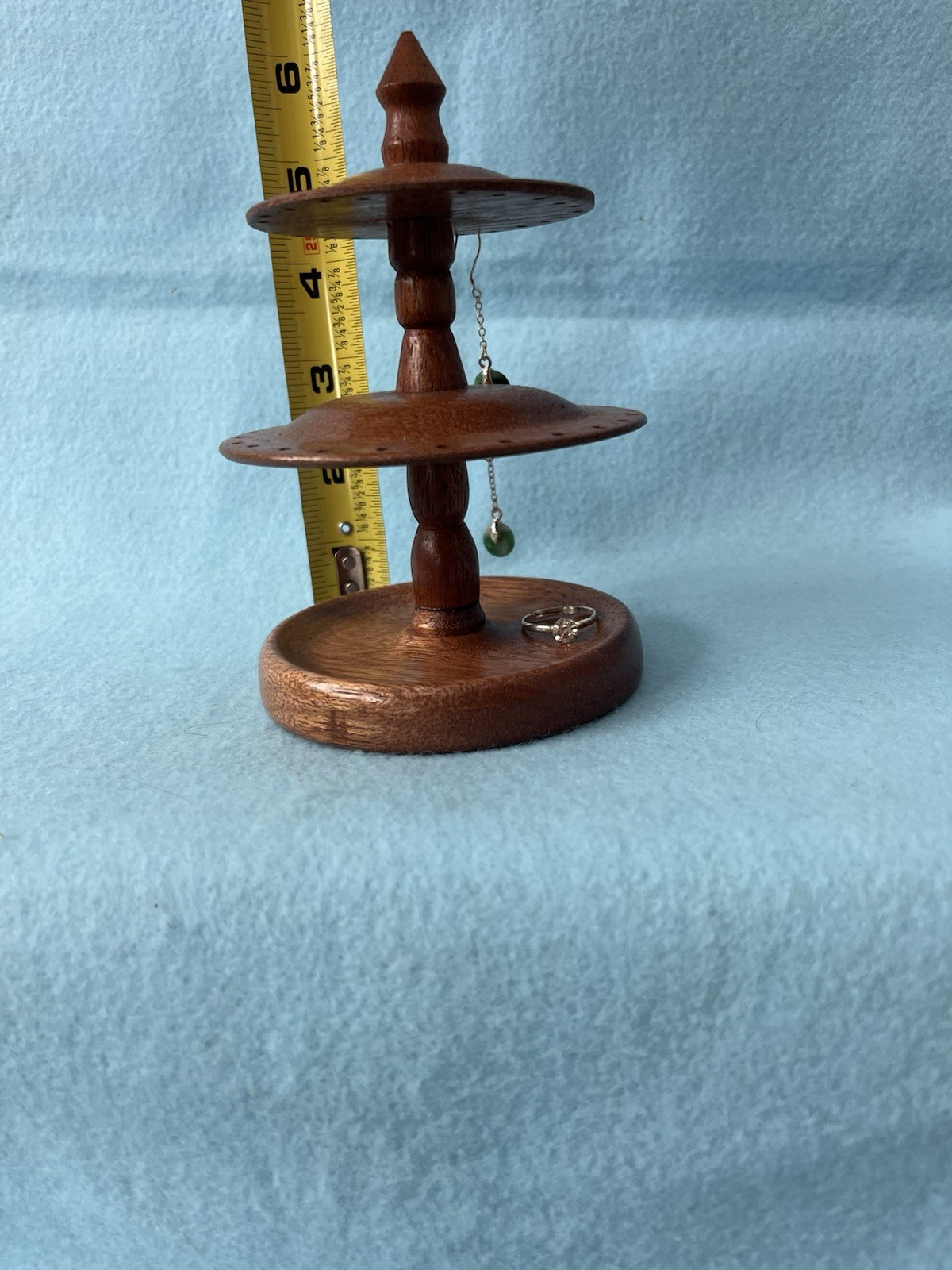 как выглядит Hand Crafted Two Tier Wooden Earring Stand Holder Hanger display Tree Choose 1 фото