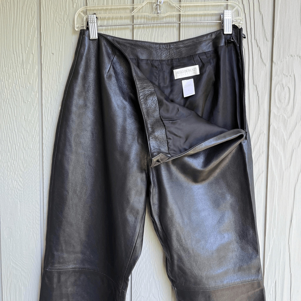 Hugo Buscati Vintage Black Leather Pants Women s 8 High Rise Lined Trousers VTG