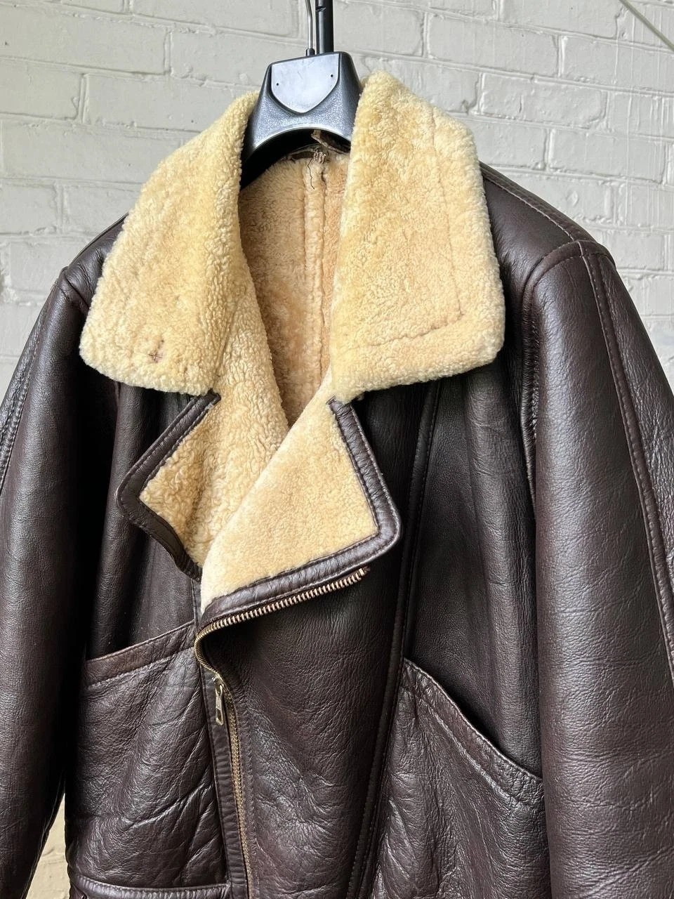 как выглядит Shearling Sheepskin Flying Leatehr Jacket Vintage Aviator Size M фото