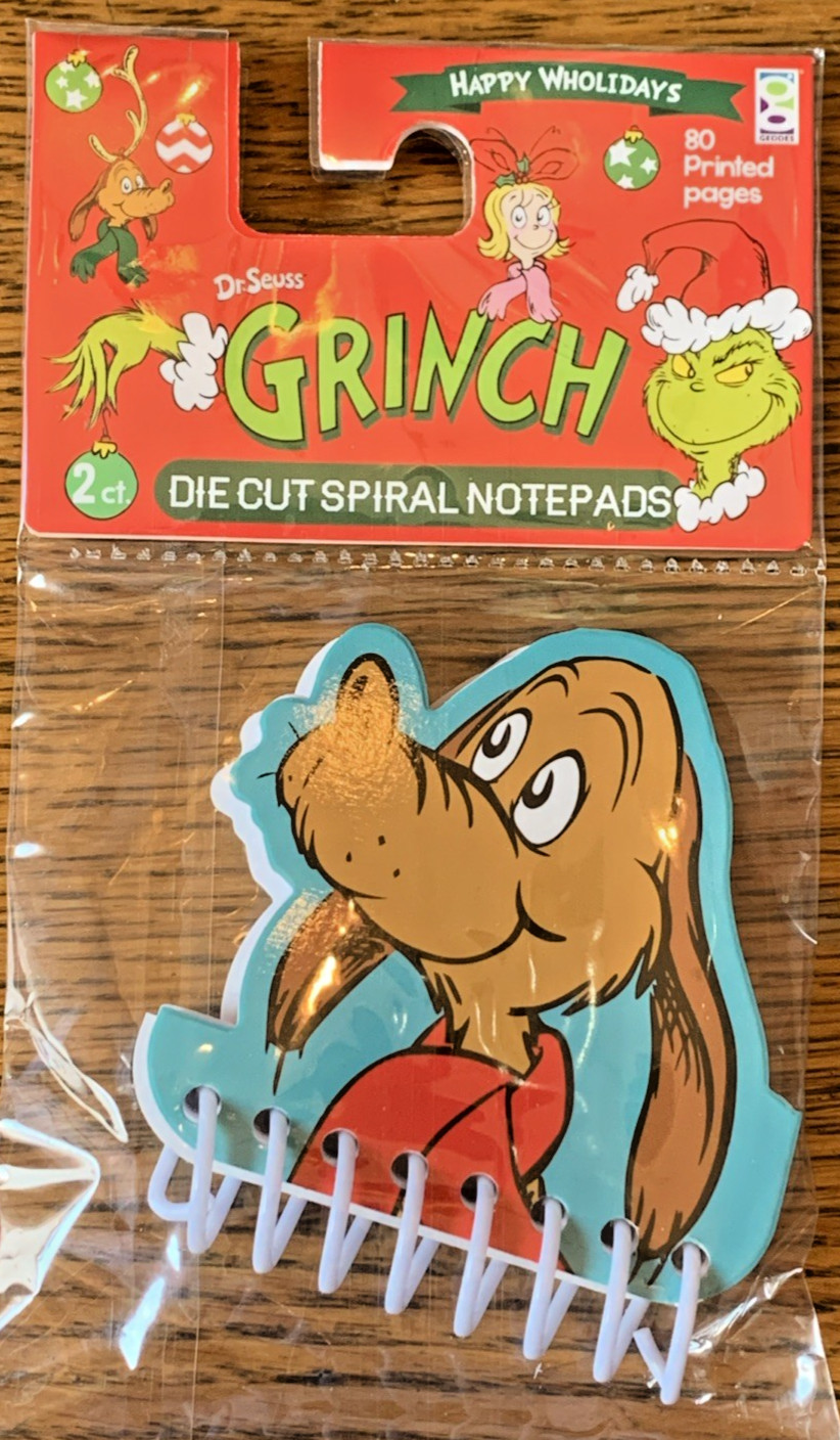 NEW Dr. Seuss GRINCH 2 Die Cut Spiral Notepads w/80 pages-Max Cindy Lou Covers
