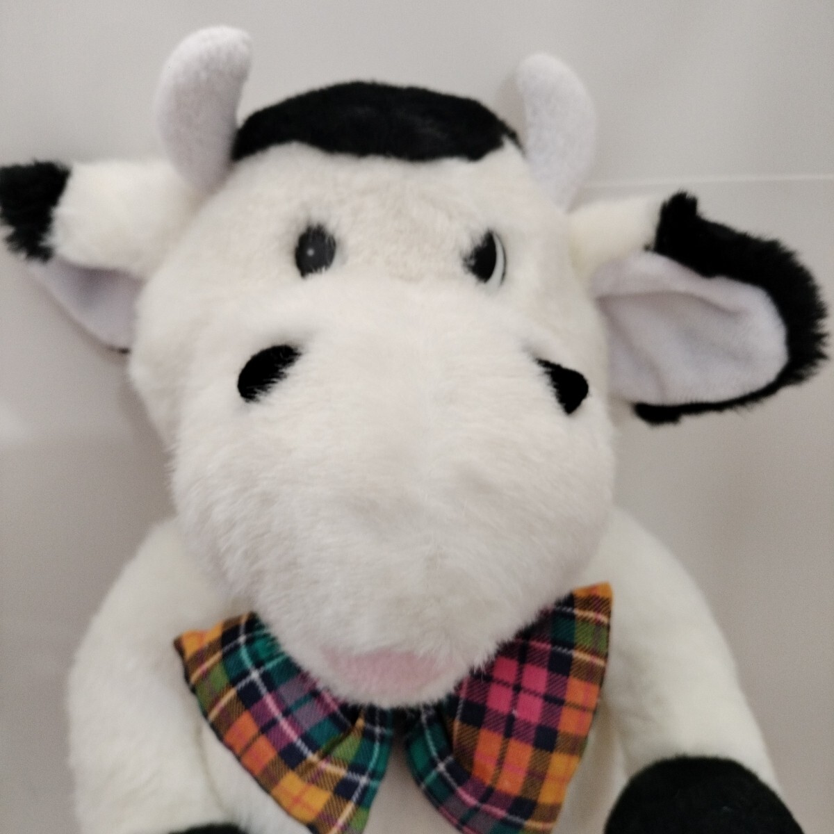 как выглядит Commonwealth Black And White Cow With Plaid Bow Tie 15 Plush Stuffed Animal фото