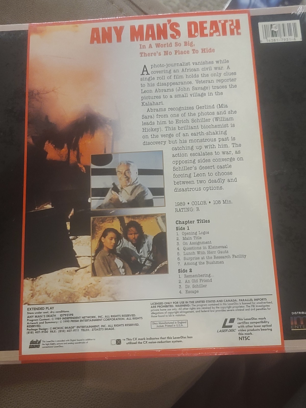 Any Mans Death Laserdisc, 1990 NEW SEALED
